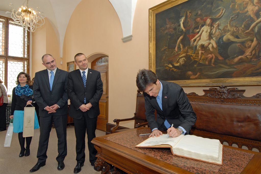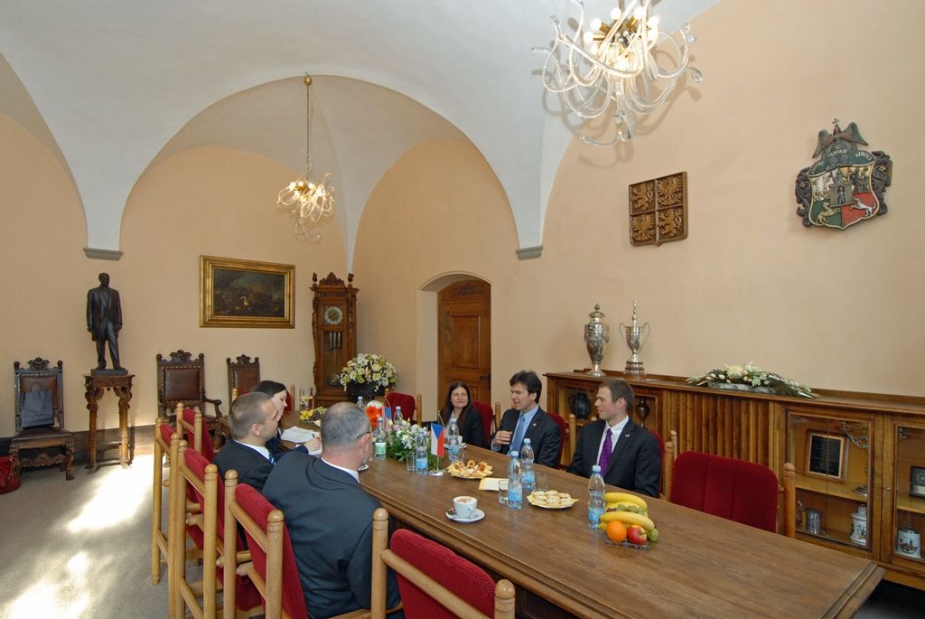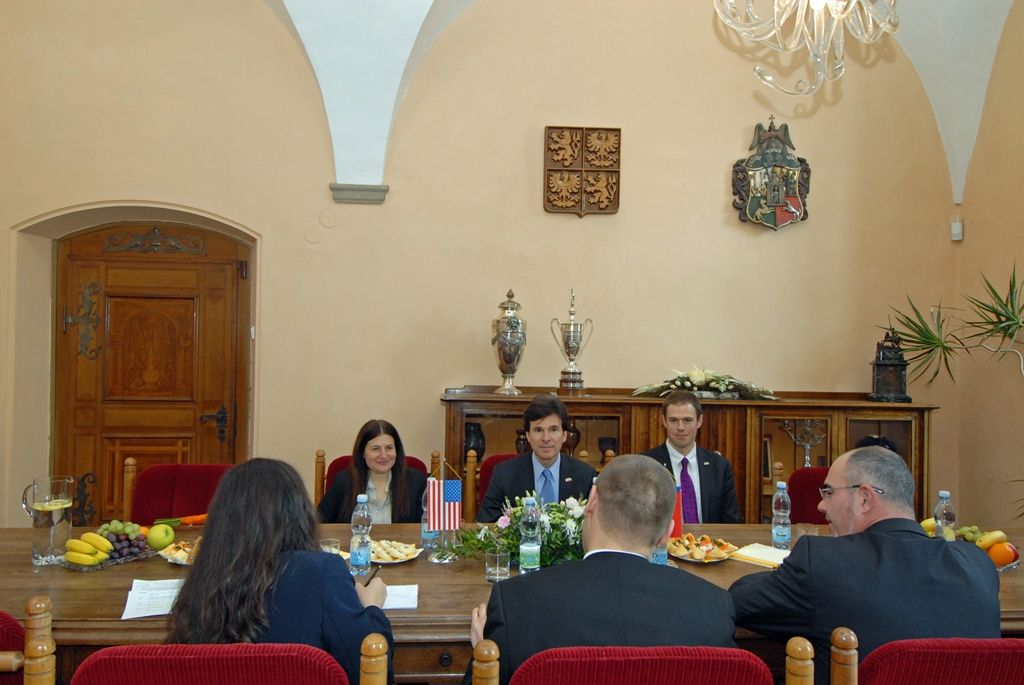 U příležitosti předávání Cen Ladislava Sutnara navštívil Plzeň velvyslanec Spojených států amerických Andrew Hirsch Schapiro. Před samotným ceremoniálem jej přijal primátor Martin Baxa a ekonomický náměstek Martin Zrzavecký. Velvyslanec při setkání přiznal, že Plzeň navštívil poprvé již v roce 1982 a vnímá proměnu města i pokrok, které jsou od té doby značné. Při diskusi se zajímal o nadcházející rok 2015 v souvislosti s projektem Evropské hlavní město kultury a jubilejní oslavy osvobození americkou armádou. Při následném slavnostním aktu velvyslanec uvedl, že Plzeň je vnímána jako nejvíce americké město v České republice.