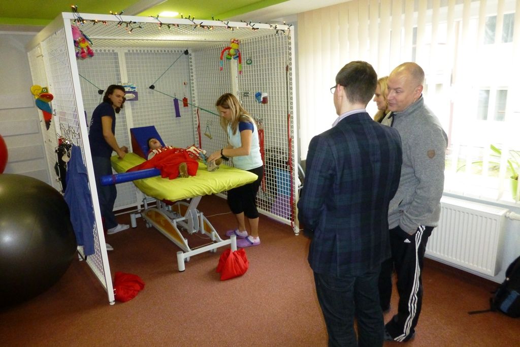 Náměstek nejprve nadělil pod vánoční stromeček drobné dárky pro klienty a poté si v doprovodu Marcela Šika a Markéty Jungové prohlédl zařízení. Byla mu popsána mimo jiné funkce terapeutických pomůcek jako například motomedu a vertikalizátoru, zhlédl terapii TheraSuit. Zástupci zařízení jej dále zavedli do části objektu, kde se buduje 16 pokojů pro děti a jejich rodiče.