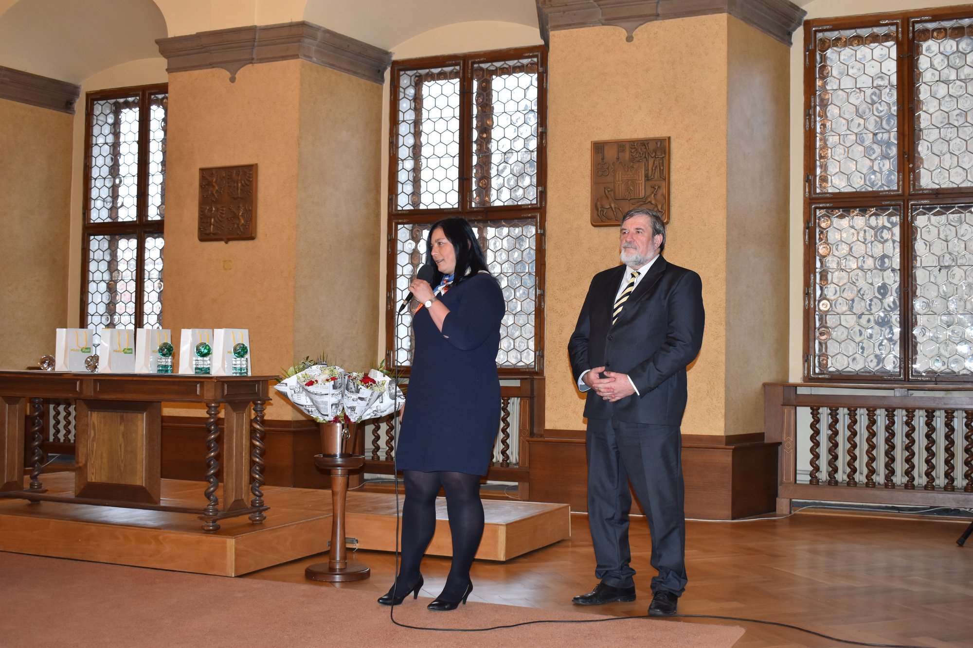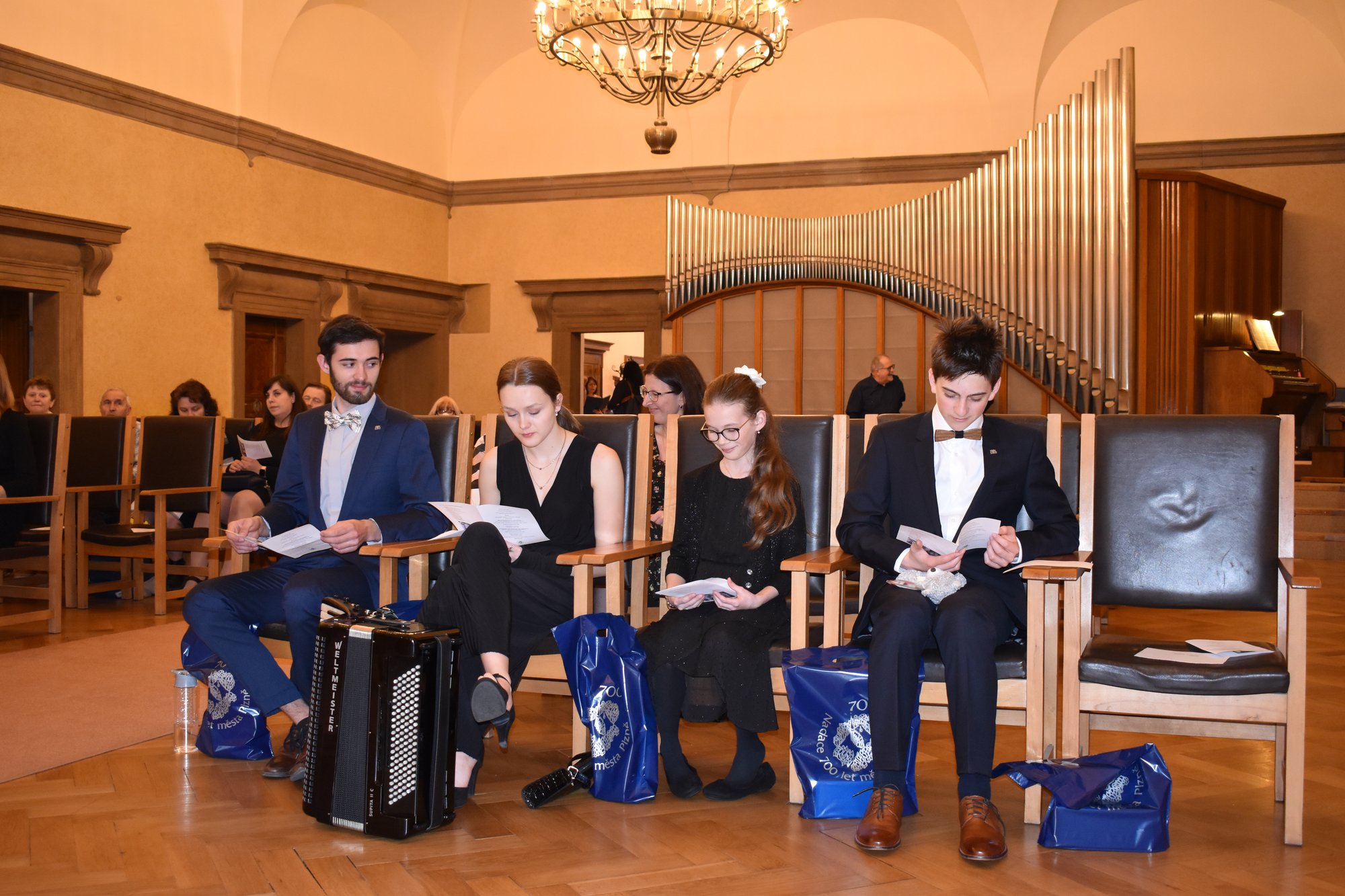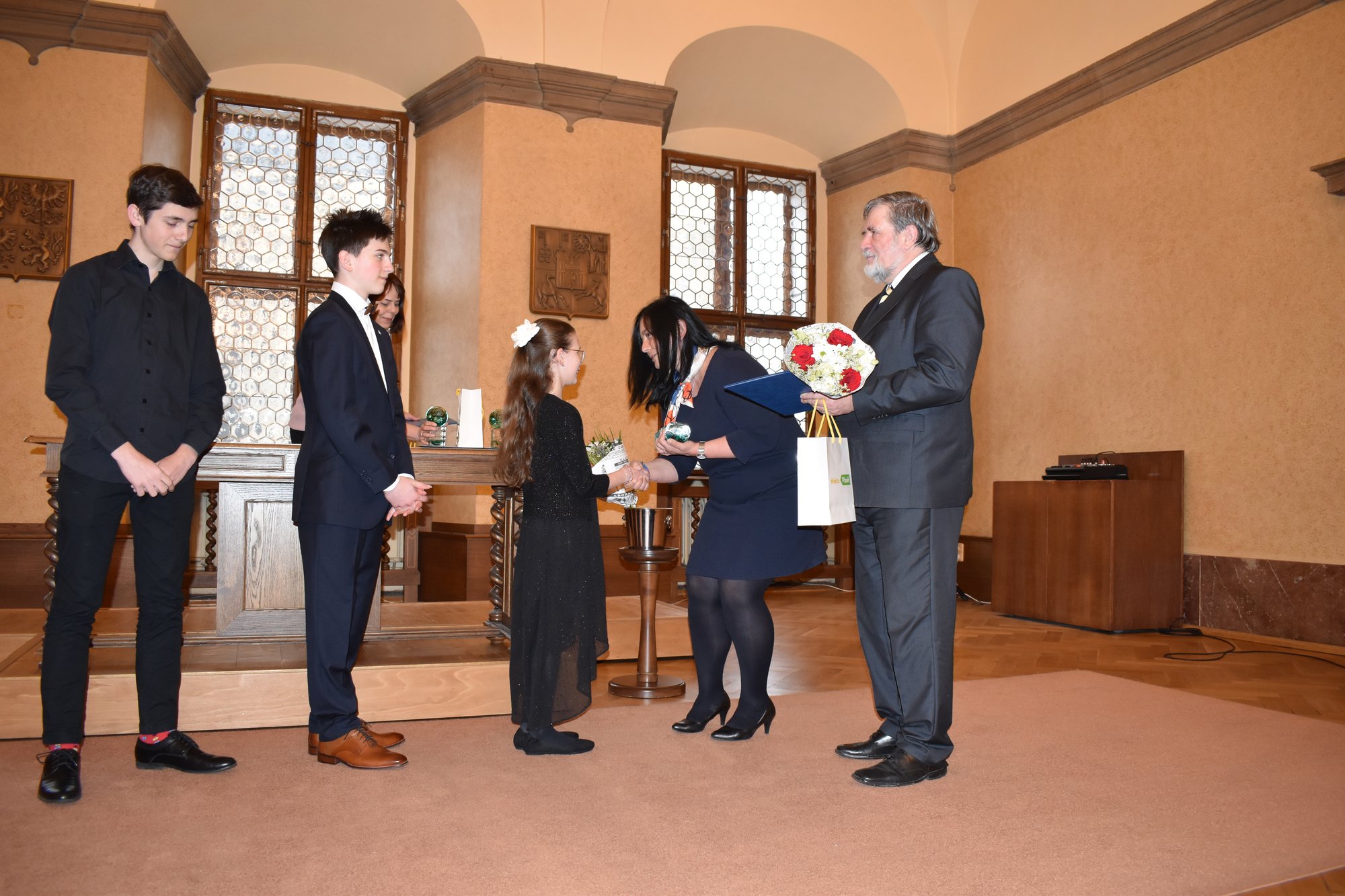 „Jsem velmi ráda, že vás mohu přivítat v tomto sále, který je plný mladých talentů vážících se k Plzni. Doufám, že v Plzni budete pokračovat a zdobit Plzeň svým uměním. Je strašně důležité mít funkční město ve smyslu infrastruktury, musíme mít město, které má dobré silnice, dobrou vodu, funkční teplárnu, pak je potřeba dobrá veřejná doprava, kvalitní veřejný prostor, abychom v městě rádi trávili čas, ale pak potřebujeme to, proč do města chodit. Je nutné mít kulturu, jít do divadla, na koncert, na kulturní akci. A to může vždy vzniknout jen tehdy, když se najde velká snaha a píle. Jste velmi talentovaní, ale přesto jsou za tím vaše hodiny tvrdého tréninku. Moc vám gratuluji! Přeji vám, abyste vydrželi, aby vám to vždy šlo. Když nějaké takty nebudete moci docvičit, vzpomeňte si na dnešní chvíli oceňování,“ řekla ve svém úvodním slově mimo jiné Veronika Jilichová Nová, radní pro oblast prezentace a marketingu a doplnila: „Hudba překoná všechny obtíže a lidé ji mají rádi.“