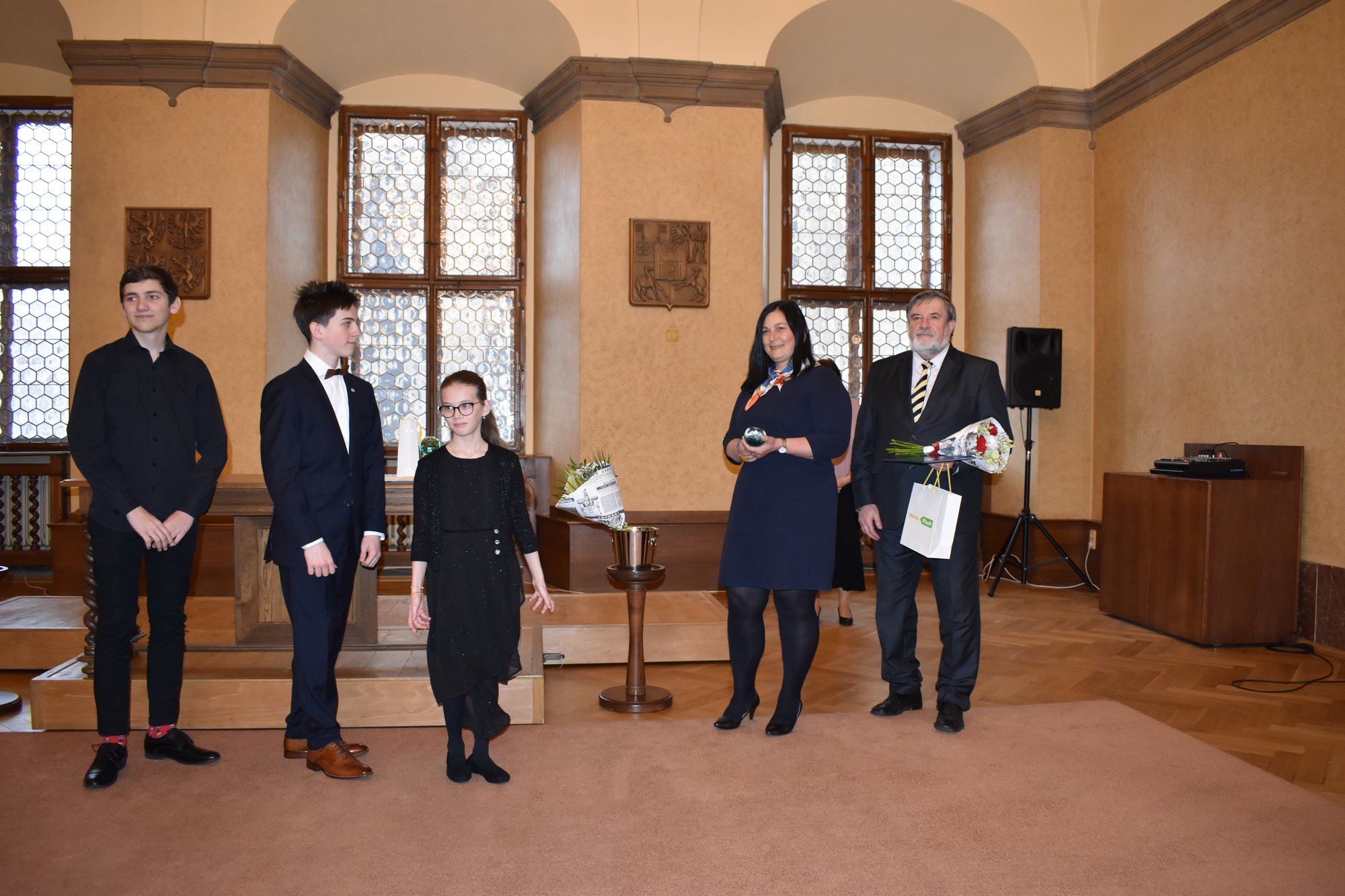 Plzeňský Orfeus junior (zleva: radní Veronika Jilichová Nová, Šimon Váhala, Adam Slunečko, Tereza Knoblochová, Petr Náhlík), foto: H. Josefová