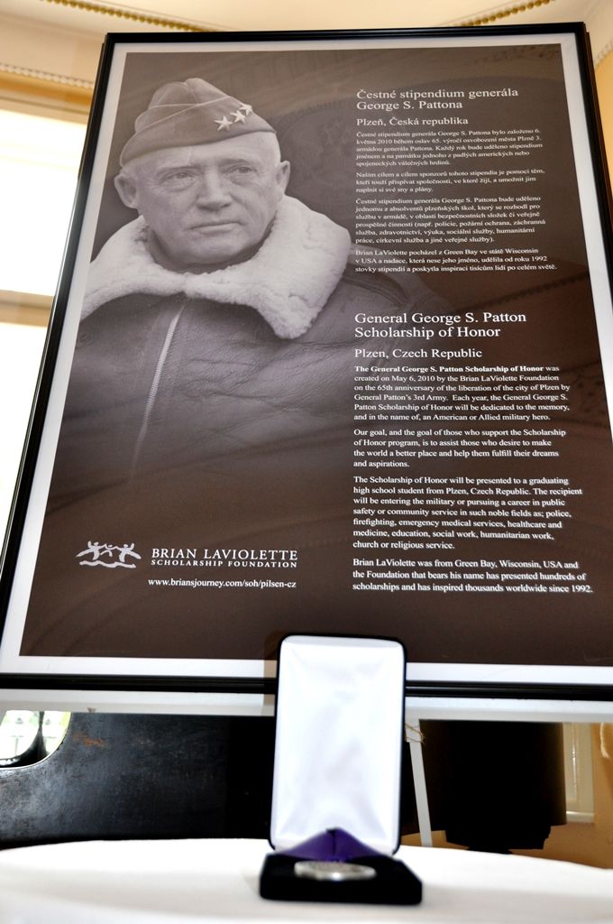 Čestné stipendium generála George S. Pattona vyhlašuje americká Nadace Briana LaVioletta z Wisconsinu. K myšlence udílet stipendium v České republice přivedly jednoho ze zakladatelů nadace Douga LaVioletta oslavy 65. výročí osvobození Plzně americkou armádou. Vřelý vztah Plzeňanů k americkým osvoboditelům byl důvodem, proč finančně podporovat mladé lidi, kteří ctí principy a myšlenky prosazované generálem Pattonem.