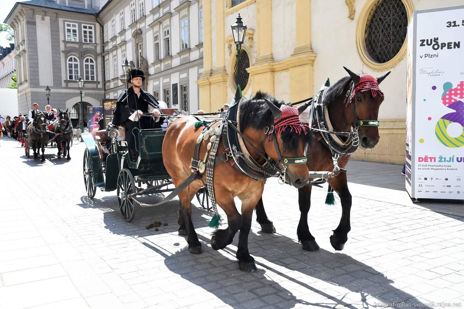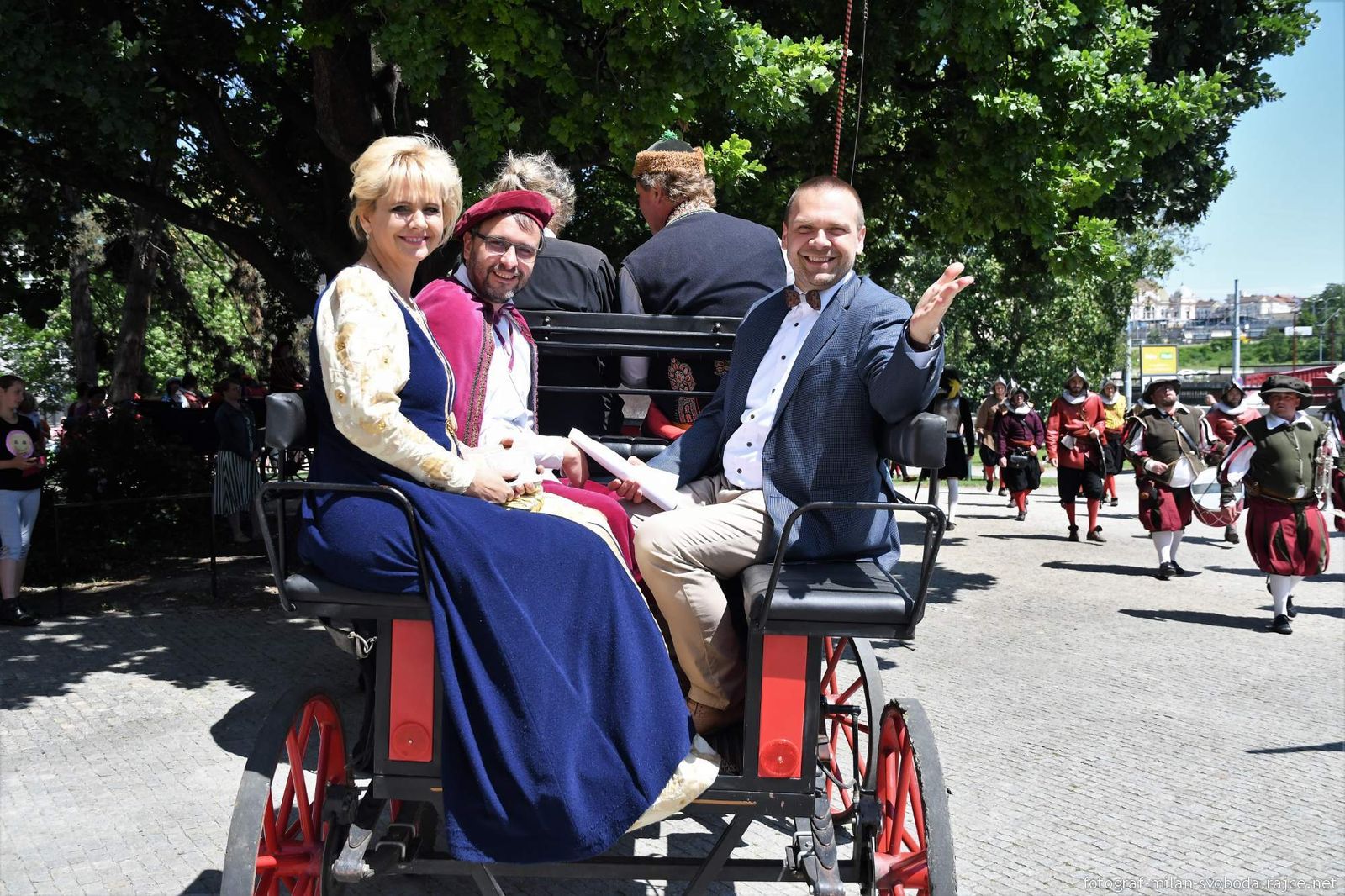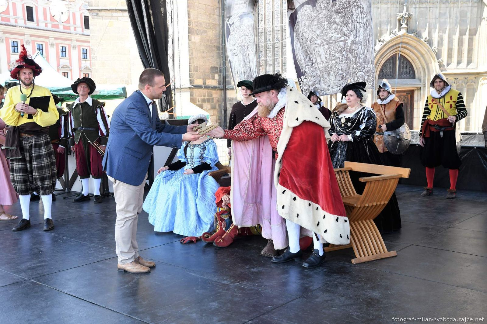 Císaře Rudolfa II. na náměstí Republiky přivítal v sobotu 8. června primátor města Martin Baxa, který přítomným připomněl historii působení císaře v Plzni a předal mu symbolický klíč od města: „Císař Rudolf II. se kvůli moru v Praze přesunul do Plzně v polovině září 1599 a vydržel tu až do začátku června roku 1600. Císař bydlel ve výstavném domě Šebestiána Pechovského z Turnštejna na plzeňském náměstí hned vedle radnice a dal vzápětí při tomto domě vybudovat systém pavlačí, který vedl až k městským hradbám. Mimochodem Šebestián učil císaře Rudolfa v 70. letech češtině a byl též purkmistrem Plzně. S Rudolfem se přesunul do Plzně i dvůr a také delegace, které povětšinou marně čekaly na audienci. Pro Plzeň to byla mimořádná epizoda, neb jsme se stali nakrátko centrem impéria.“