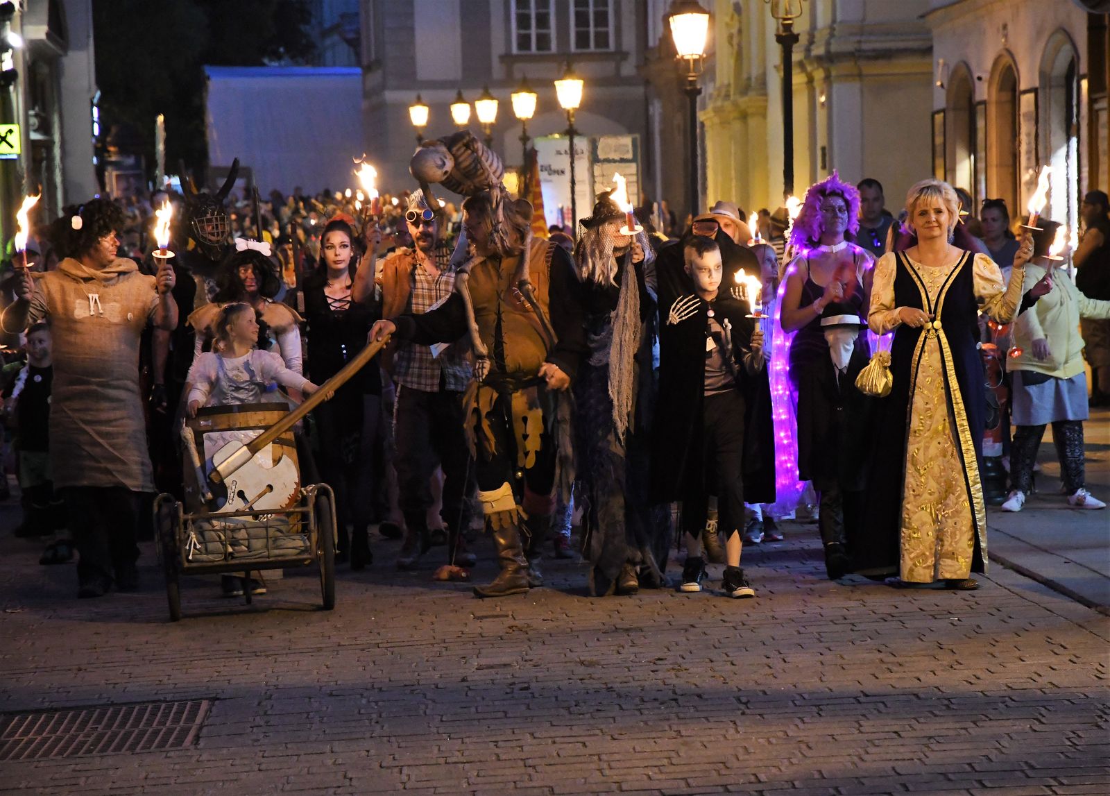 V sobotu prošel Plzní také velkolepý průvod císaře s hraběnkou Stradovou, krásnými dámami, dvořany, vojáky a komorníky. Velkému obdivu se těšil jeho proslulý zvěřinec, kterému vévodil bílý jednorožec a dvouhrbý velbloud. Nechyběli ani alchymisté či hledači Kamene mudrců. Do průvodu se zapojili také účinkující Mezinárodního folklorního festivalu CIOFF Plzeň. Se soumrakem se k hlavní scéně na náměstí Republiky začala stahovat strašidla, pohádkové bytosti a různé masky. Po svém reji za doprovodu Strašlivé podívané byla oceněna ta nejzajímavější. Strašidla se spolu s doprovodem pod vedením svého principála Zdeňka Zajíčka vydala za světel pochodní na tradiční Vejšlap, který došel opět na náměstí Republiky. Zde proběhl pořad Anděl, aneb Příběh Plzeňského znaku, který připravila skupina Lorika, jež slaví stejně jako Historický víkend 25 let. Podívaná byla zakončena hlaholem všech plzeňských zvonů a osvětleným andělem na věži katedrály. Tečkou za sobotním programem byl ohňostroj.