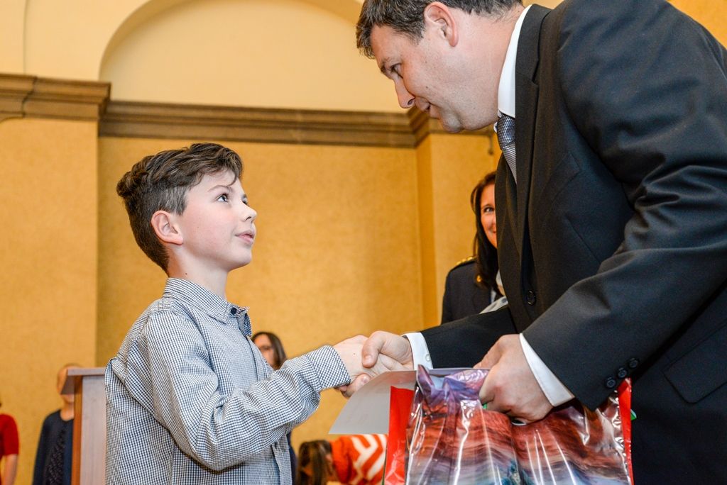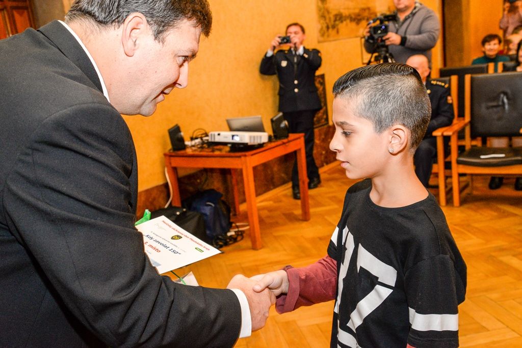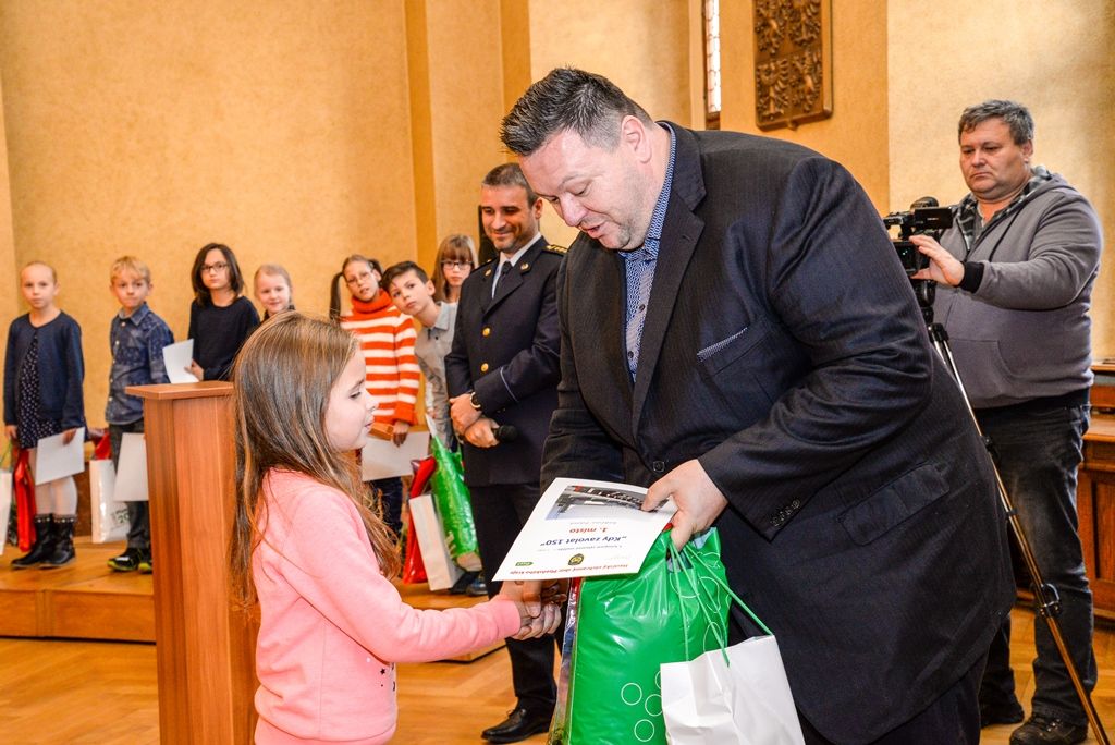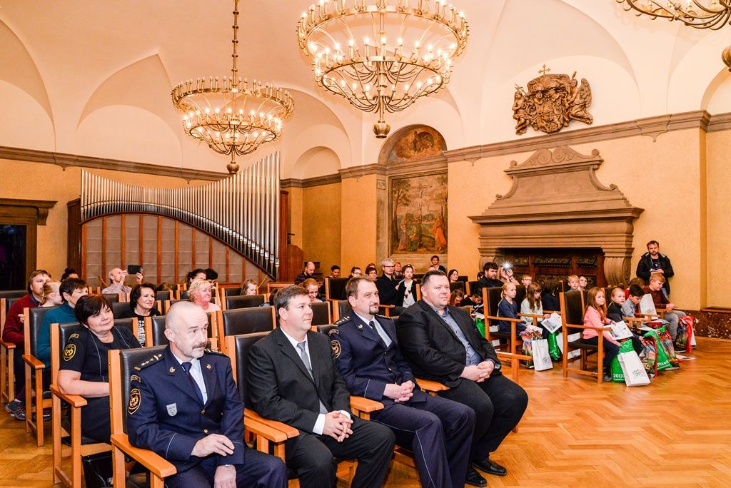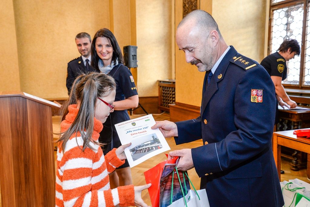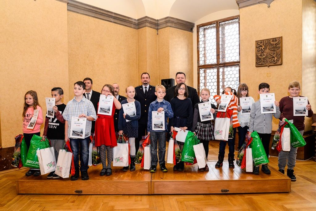 V obřadní síni plzeňské radnice převzalo ve středu 15. listopadu dvanáct dětí ocenění za svá díla ve výtvarné soutěži Kdy zavolat 150, kterou uspořádal Hasičský záchranný sbor Plzeňského kraje spolu s Odborem bezpečnosti, prevence kriminality a krizového řízení Magistrátu města Plzně.