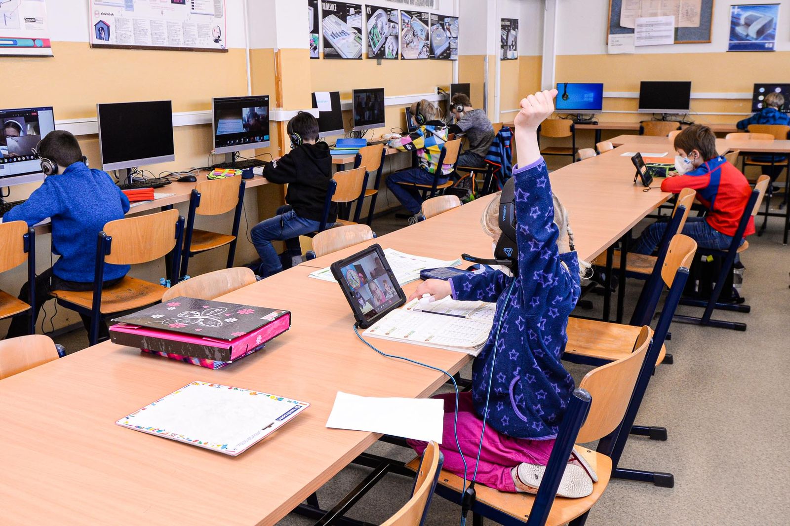 Děti ve 31. základní škole chrání speciální nátěr zdí likvidující viry i bakterie