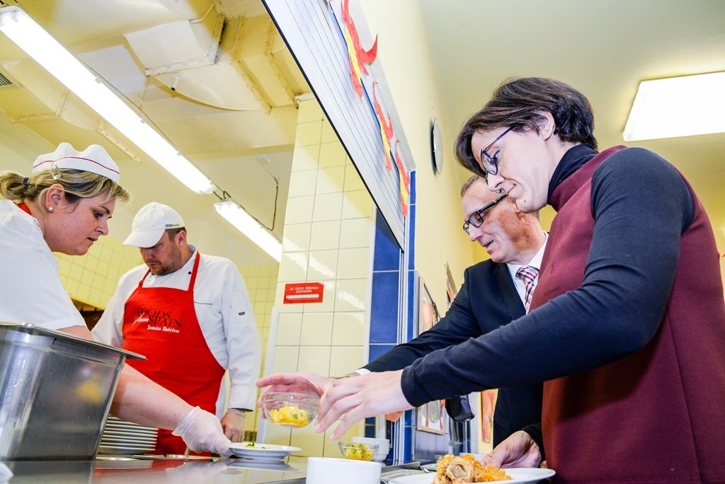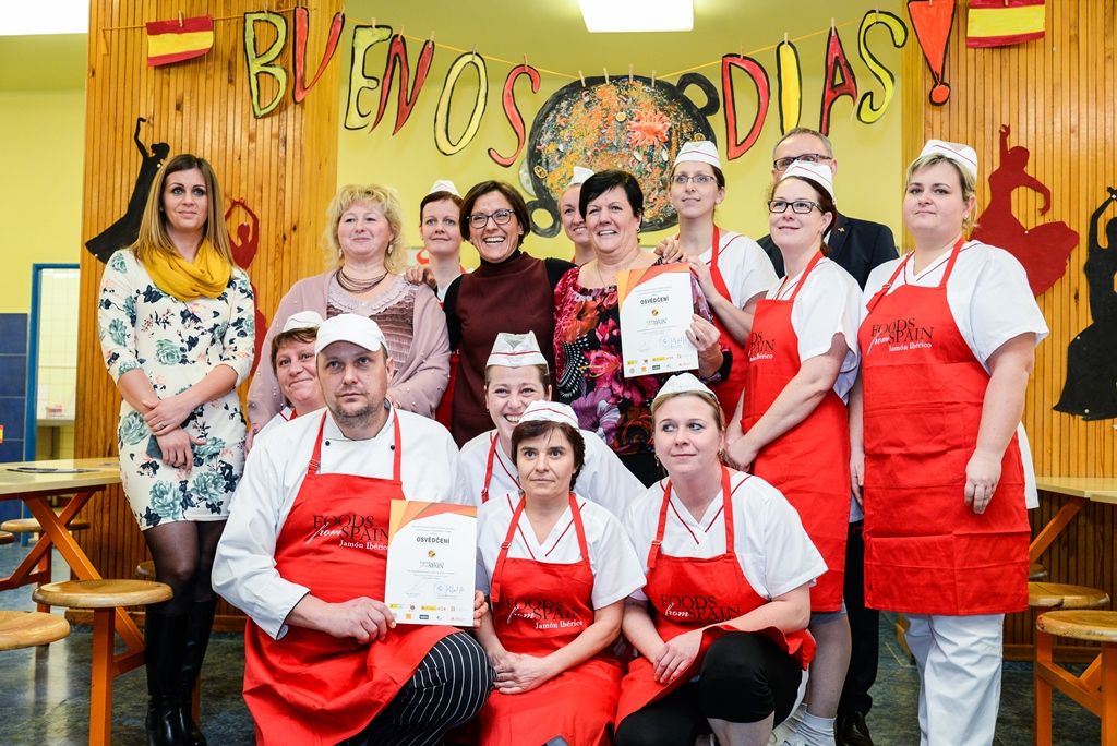 Hostům a svým zhruba devíti stovkám strávníků kuchařský tým pod vedením šéfkuchaře školy Václava Hokra připravil andaluské gazpacho, jež se připravuje ze zcela syrových a čerstvých surovin, bez koření, rajského protlaku a podobně. Zvláštností je, že se polévka podává za studena. Jako hlavní chod se podávala valencijská paella, která je tradičním španělským pokrmem a skládá se z rýže, kuřecích kousků, zeleniny a je dochucena šafránem. Na závěr dostali školáci dezert, pomeranč na medu s olivovým olejem, jenž je typický pro jihošpanělskou Andalusii.