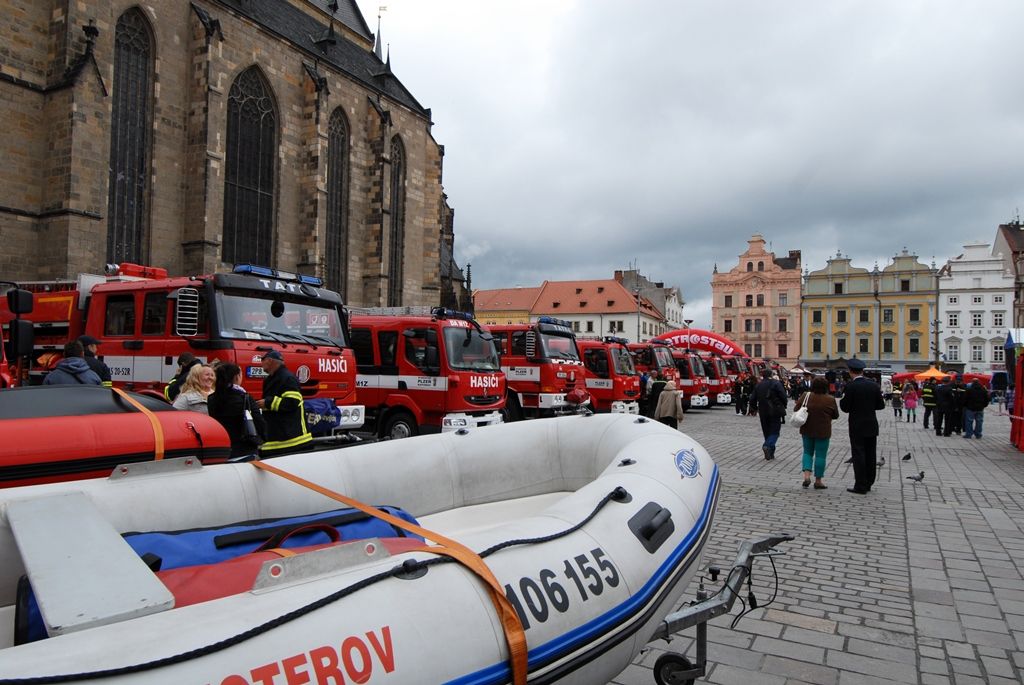 Zahájením výstavy v Národopisném muzeu, prezentací nejnovější techniky, výkony lezecké skupiny na lanovce vedoucí z kostelní věže, předvedením simulátoru zakouření, hudební produkcí a v neposlední řadě slavnostním aktem, při kterém došlo k dekorování tradičních historických praporů záchranných sborů, si hasiči na náměstí Republiky připomněli 150 let dobrovolné požární ochrany v České republice.