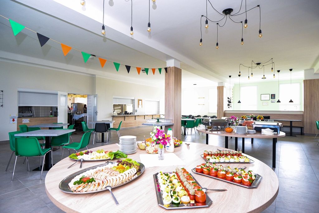 Díky rekonstrukci došlo k navýšení kapacity školní jídelny na 120 míst. Jídelna slouží nejen pro studenty střední školy dopravní v Křimicích, pro první stupeň 15. základní školy v Křimicích, která sídlí v těsné blízkosti střední školy, ale také pro žáky ubytované na internátu v pátém městském obvodě. Obědy ve školní jídelně si může objednávat též veřejnost. Denně uvaří pět zaměstnanců (vedoucí a čtyři kuchaři) školní jídelny průměrně 350 jídel, na výběr mají strávníci ze třech jídel. Pro internát zajišťuje školní jídelna kromě obědů také snídaně a večeře.