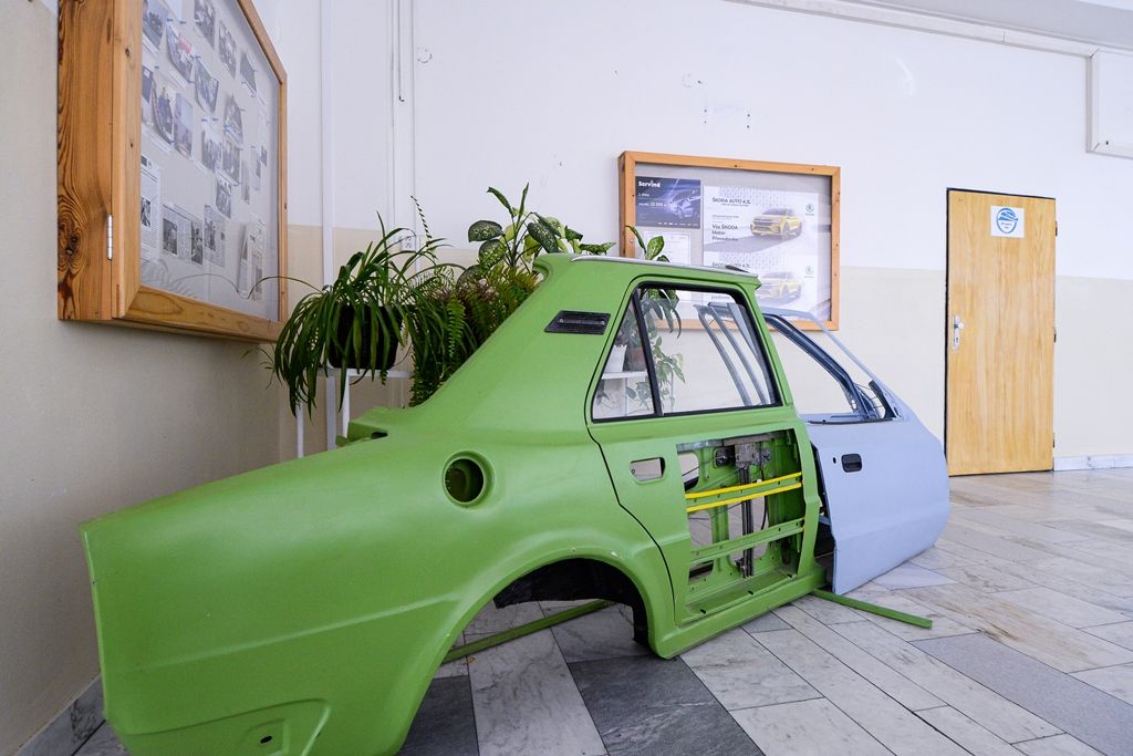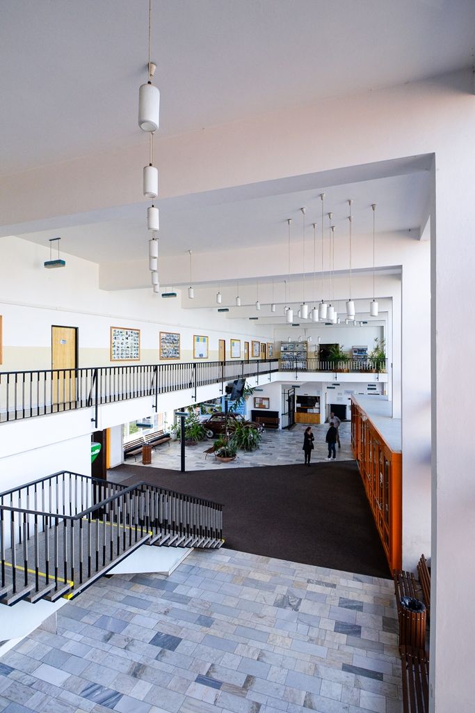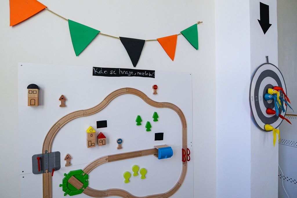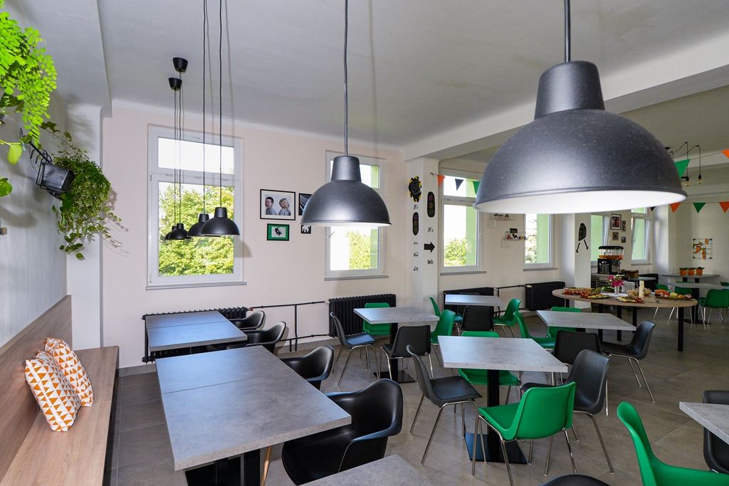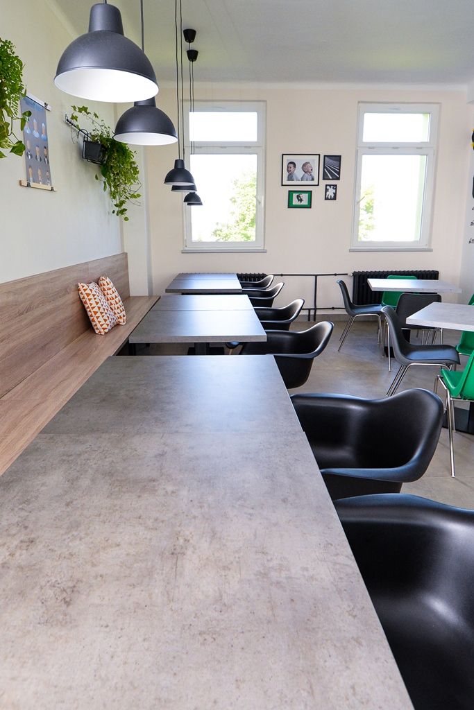 „Hlavním tématem nového designu se stala doprava, která se zde promítá pomocí dopravního značení, semaforů či aut. Musela jsem vytvořit design, který bude příjemný jak pro dospívající středoškoláky, tak malé žáky základní školy. Barvy vycházejí z barvy fasády školy – zelené a oranžové, která navíc podporuje chuť k jídlu. Antracitová zelená barva zase hezky doplňuje podlahu v barvě betonu. Školní jídelnu jsem doplnila také hracím koutkem pro děti, kde si například mohou společně vybarvovat velké omalovánky,“ doplnila autorka nového designu školní jídelny Andrea Opatrná.