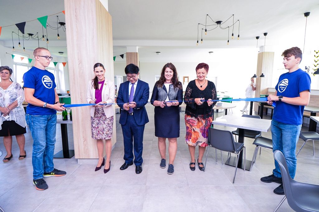 Slavnostního otevření školní jídelny se zúčastnili také zástupci čínské delegace, kteří přijeli do Plzně na exkurzi technických středních škol, zástupci Plzeňského kraje a starosta Křimic Vít Mojžíš.
