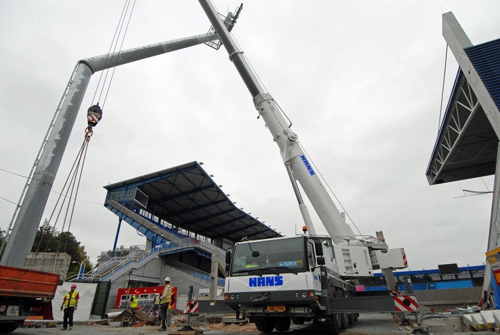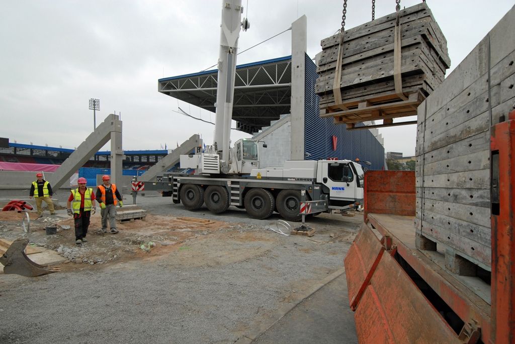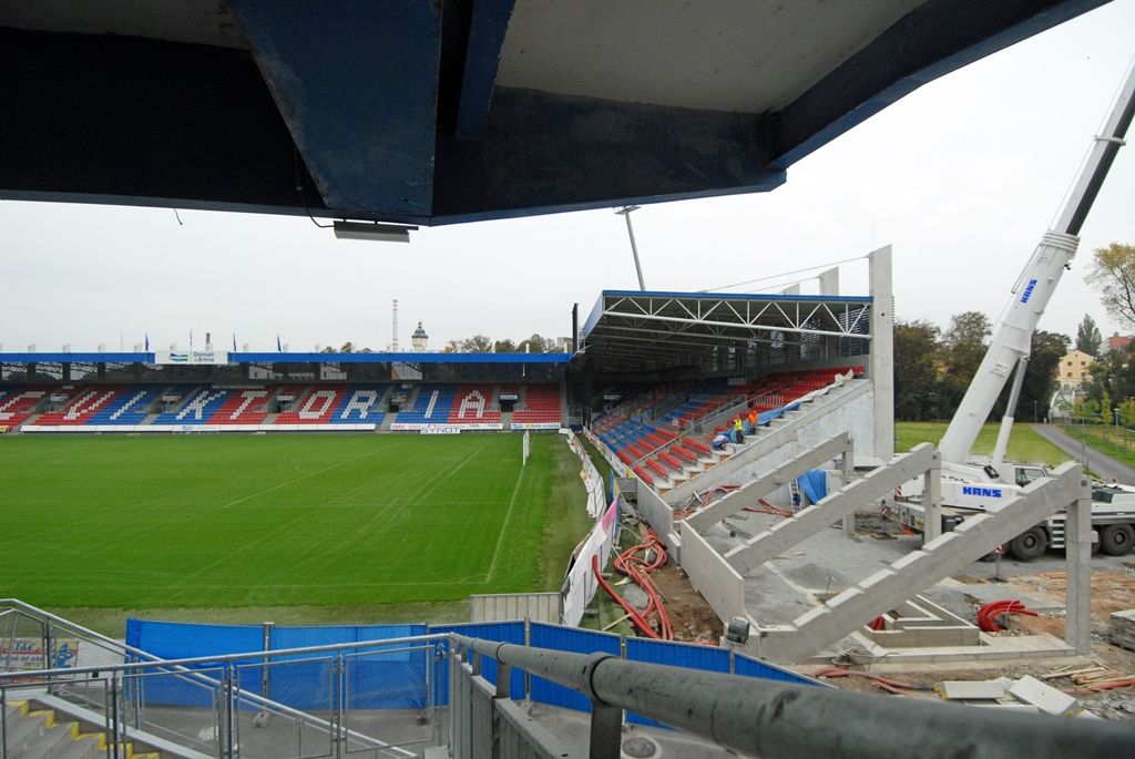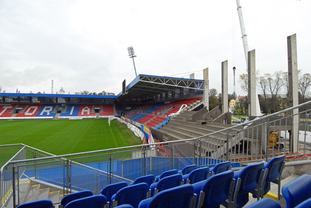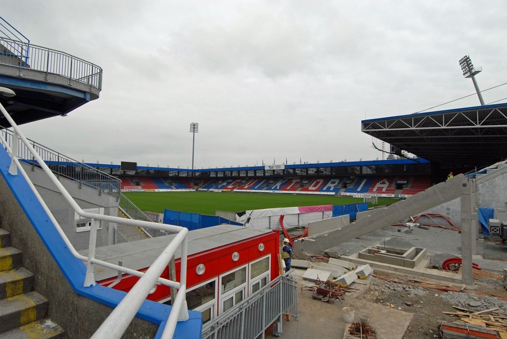 Dostavba jižní strany tribuny stadionu pokračuje podle plánu