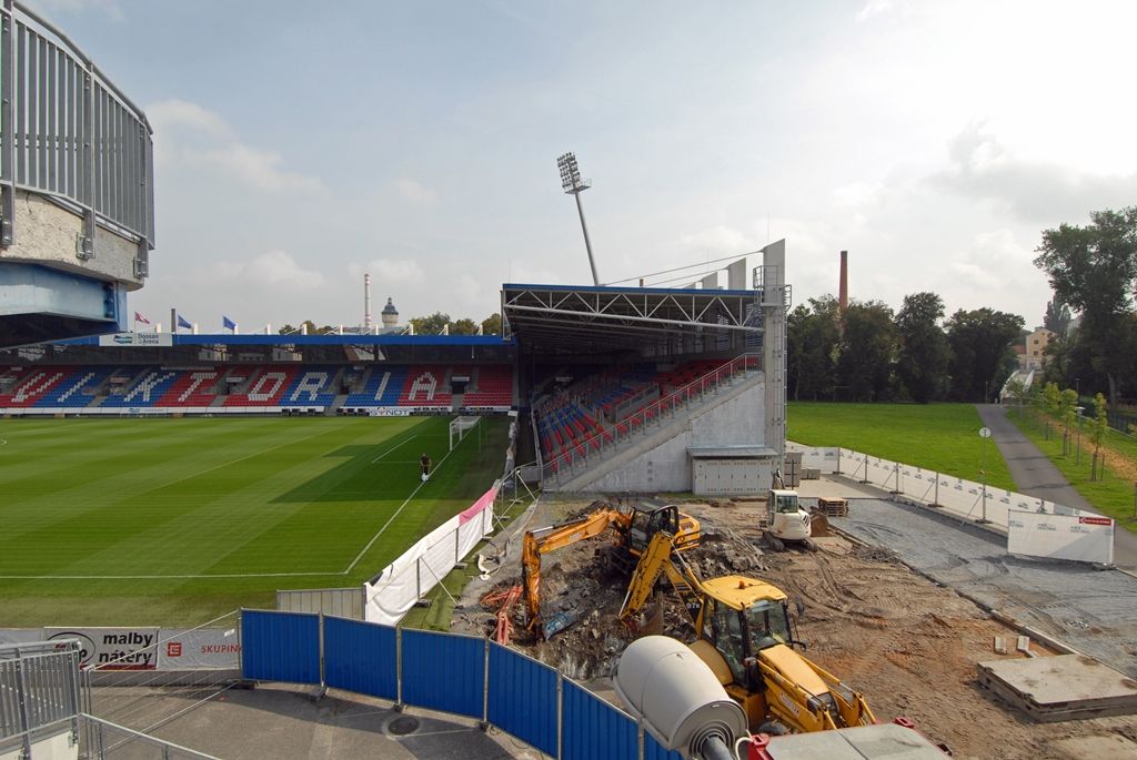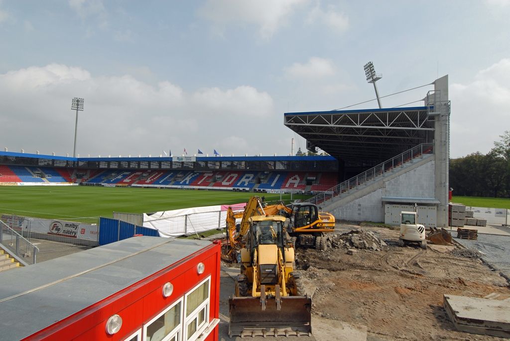 Zhotovitel, kterým je na základě výběrového řízení společnost Metrostav a.s., musí dodržet stávající barevné řešení stadionu a typ sedaček pro diváky. Výstavba za zhruba 16 milionů, které městská správa uvolnila z přebytku rozpočtu, má skončit na konci letošního roku.