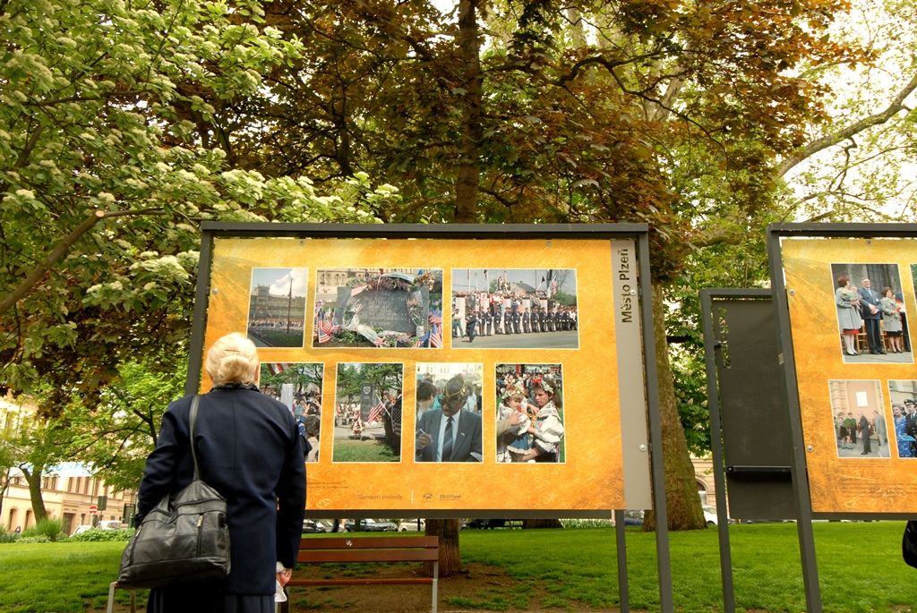 Pohled na oslavy osvobození Plzně americkou armádou nabízí venkovní výstava fotografií ve Smetanových sadech. Mapuje události s oslavami spojené od roku 1945 do současnosti. Část snímků je věnována výstavbě pomníku, pro který bylo místo sice krátce po válce vybráno, ale díky roku 1948 se od záměru postavit jej v lokalitě U Práce zcela ustoupilo. Vybudován mohl být až v roce 1995, tedy pět let poté, co se díky Sametové revoluci mohlo opět začít říkat, že Plzeň byla osvobozena americkou armádou. Po roce 1948 se o Američanech už mluvit nesmělo a režim předstíral, že Československo osvobodila pouze a jedině Rudá armáda.