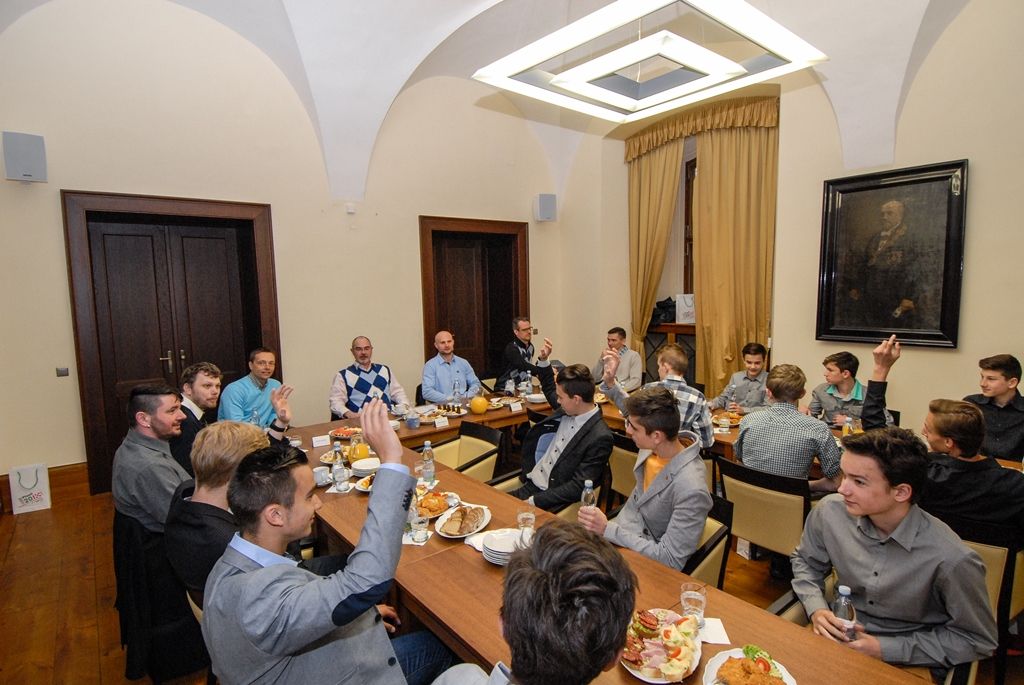 „Jsme na radnici potřetí a aspoň já mám tentokrát největší radost ze setkání. Tým je z mého pohledu nejlepší, nemyslím ani tak hráčsky, jako charakterem. Má obrovskou sílu a to kluci prokázali i nedávno,“ uvedl ředitel školy Radek Růžička. Vysvětlil, že za vítězství v republikovém finále byl tým pozván na mezinárodní turnaj na Slovensko. Pořadatelé změnili pravidla v počtu přihlášených hráčů, místo 15 chtěli jen 12 hráčů, to znamenalo tři chlapce z týmu vyřadit. Ti se ale v takové situaci dobrovolně vzdali účasti a shodli se, že pokud nepojedou všichni, nejede nikdo. Vedení se následně podařilo pořadatele přesvědčit a tým odjede na turnaj v plném počtu. O výjimečné atmosféře mezi hráči svědčí i fakt, že školní družstvo je složeno ze členů tří různých plzeňských florbalových celků. Přestože ve sportovních soutěžích existuje mezi týmy určitá rivalita, florbalisté z 33. základní školy ji mezi sebou nepociťují.
