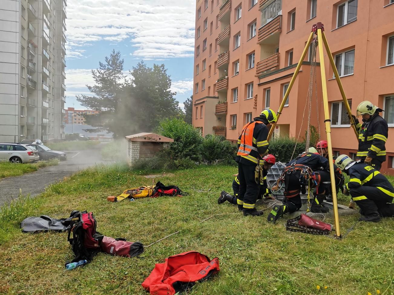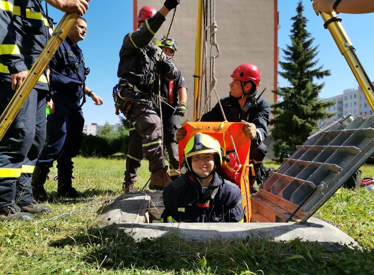 Hasiči cvičili záchranu osoby v městských kolektorech