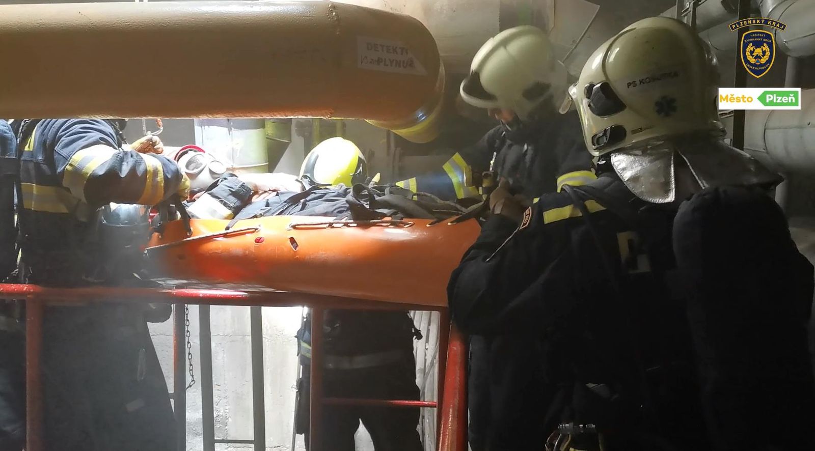 Zástupkyně Odboru správy infrastruktury Magistrátu města Plzně nejprve hasiče seznámily s prostory kolektorů a se zařízením, které je v nich instalováno. Následně se vybrané prostory kolektorů zakouřily. V kolektoru se nacházela jedna zraněná osoba, kterou hasiči po několika minutách našli a za pomoci lezecké skupiny transportovali ze stísněného prostoru.
