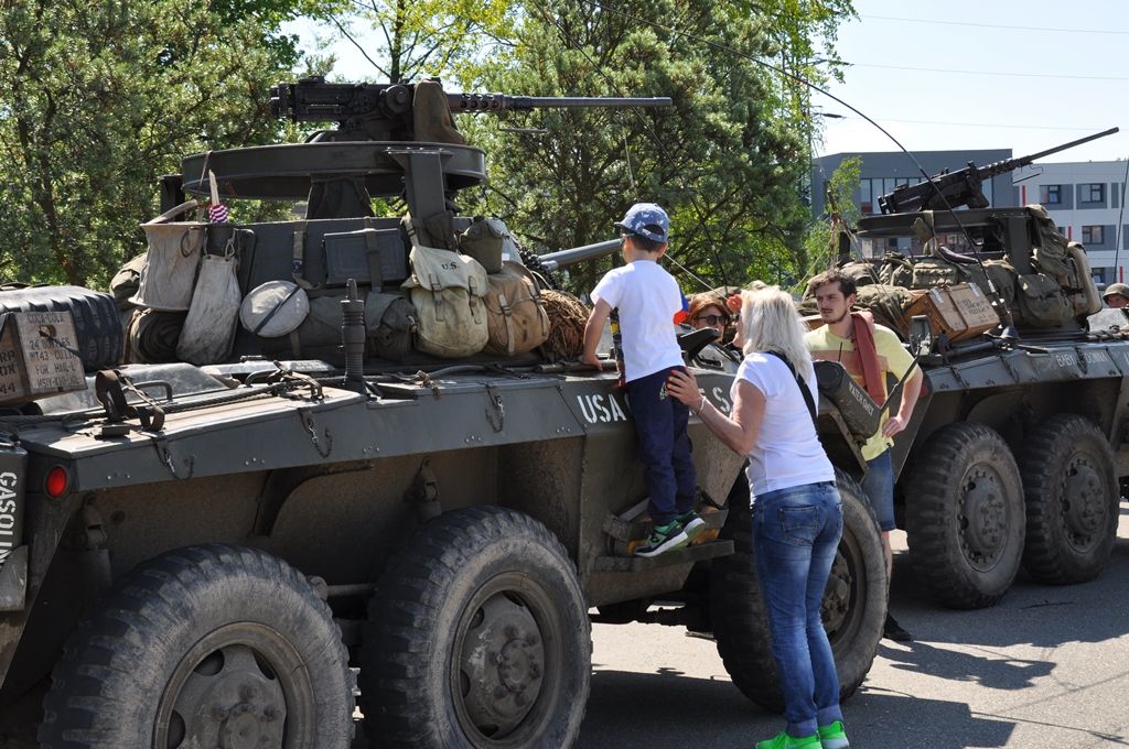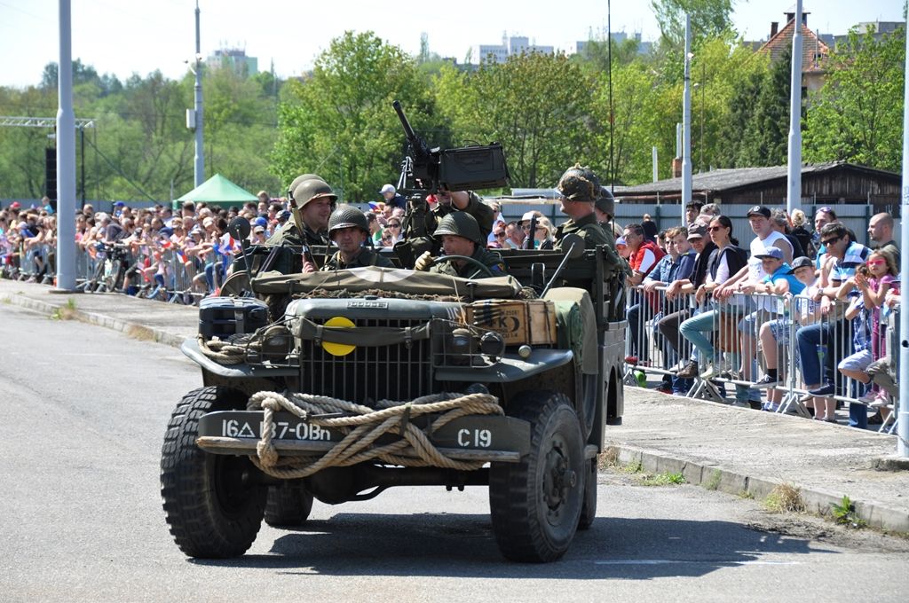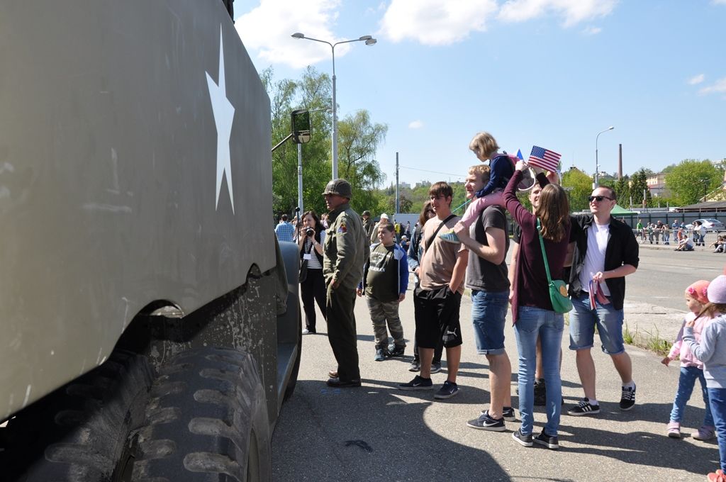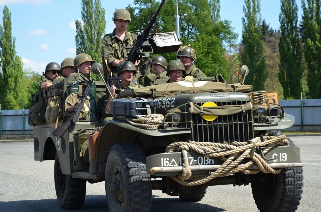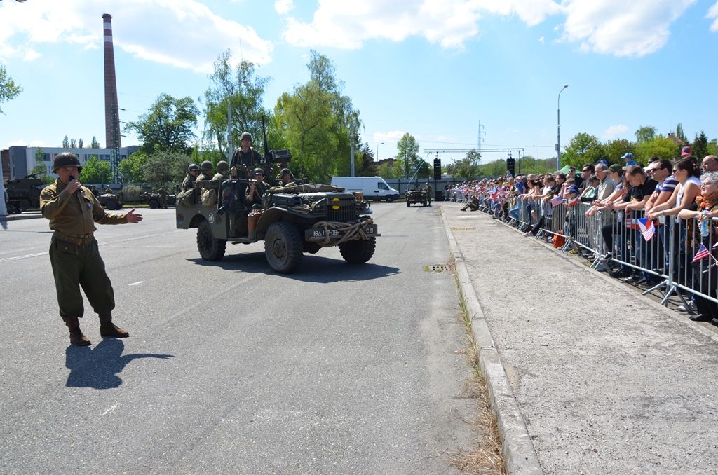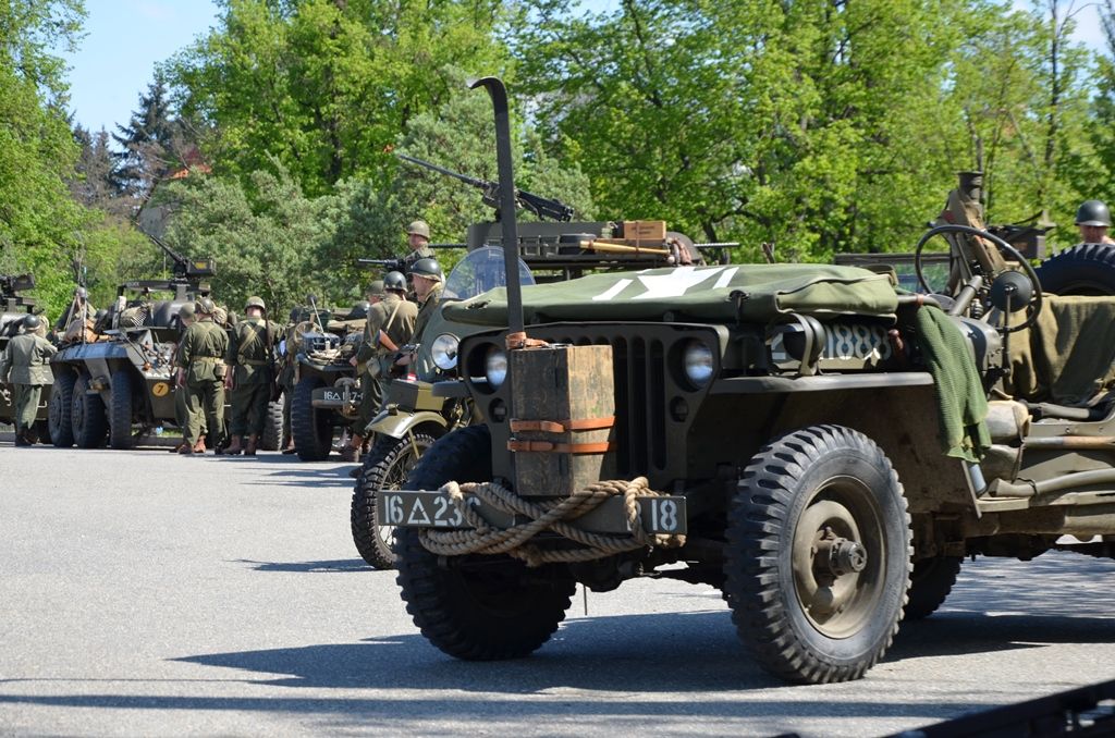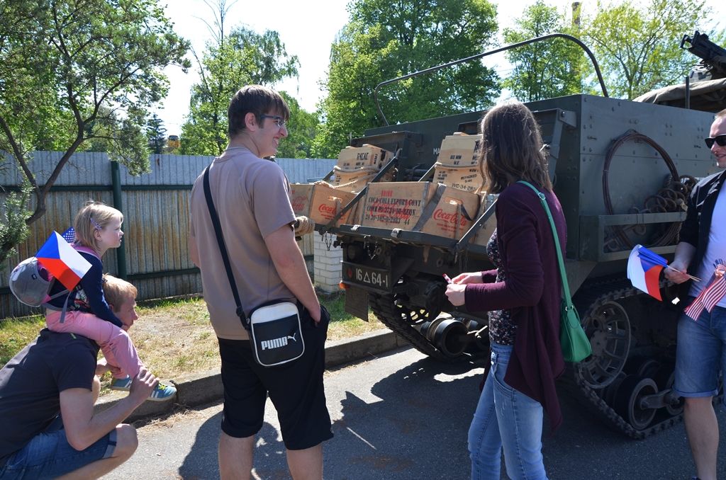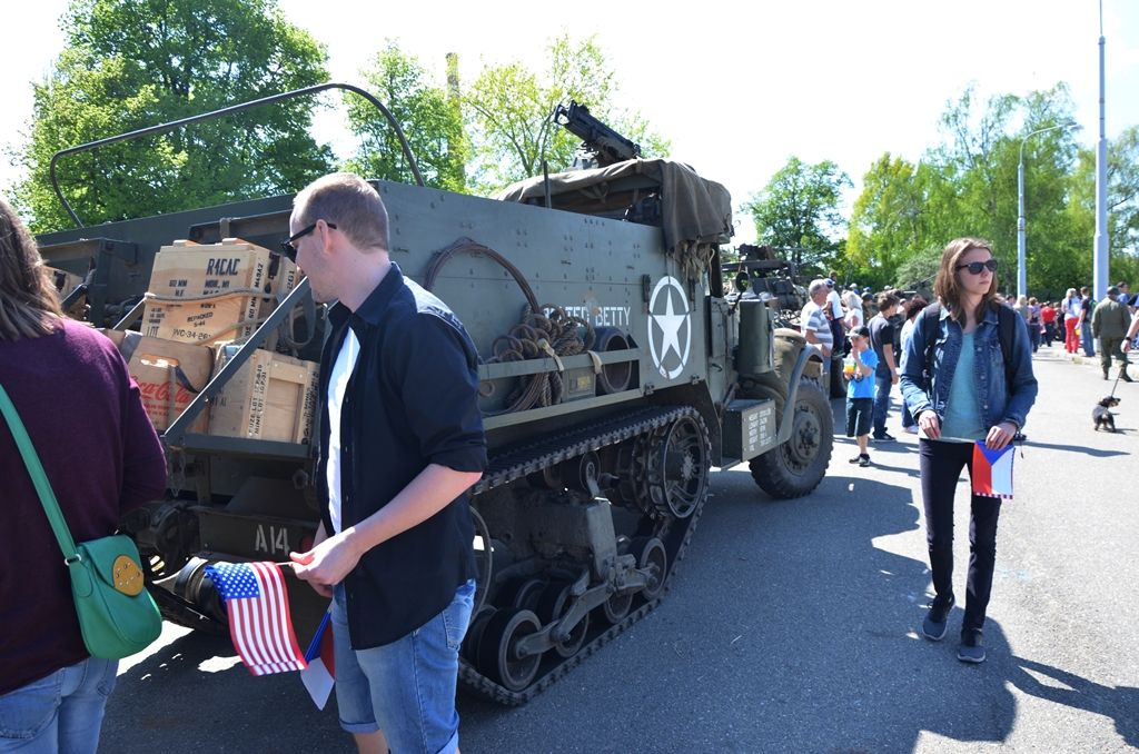 Lehký obrněný automobil M8 Grayhound, polopásové obrněné transportéry Halftracky M2 a M3, vozidla Diamond T981 a GMC, Jeepy, vozidla Dodge, Harley-Davidson WLA, ale i tahač Ward laFrance, přívěs BenHur a další historické kousky si užili návštěvníci oslav. Při komentovaných ukázkách se dozvěděli o historii vozidel nebo jejich výrobě.