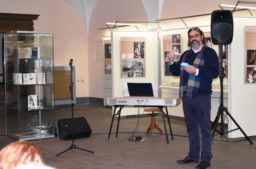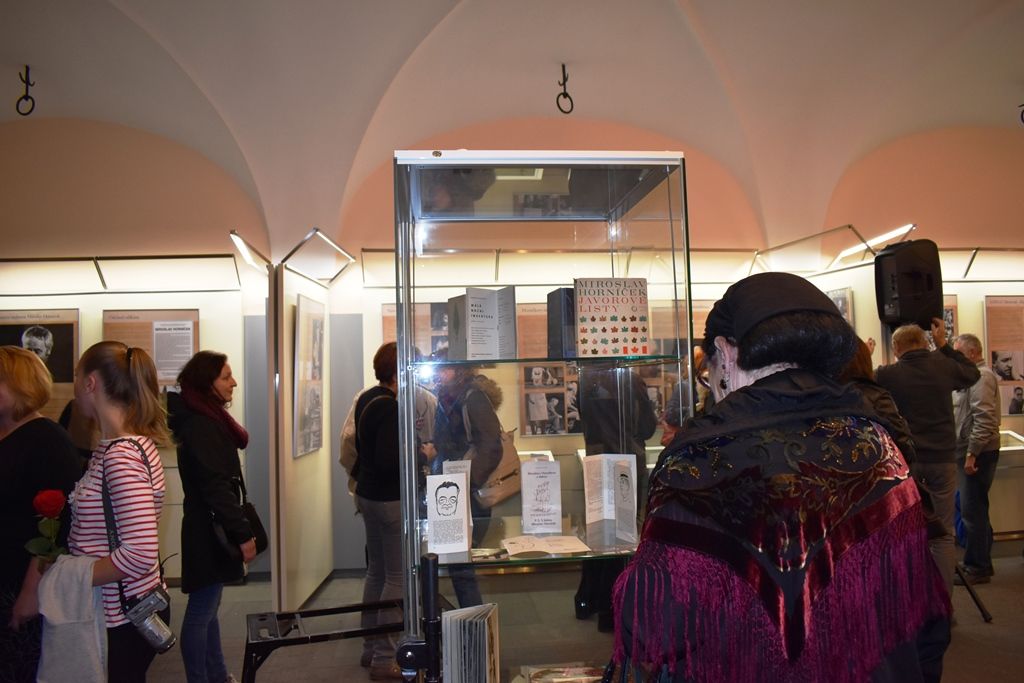 Na vernisáži v mázhauzu připomněl život a význam Miroslava Horníčka první náměstek primátora Martin Baxa, na osobní setkání s ním zavzpomínala dramaturgyně Divadla Josefa Kajetána Tyla Marie Caltová a plzeňský malíř Josef Černý, autor obrazu, na němž vypodobnil Miroslava Horníčka s půllitrem piva v ruce. Originál obrazu byl k vidění pouze na vernisáži, jeho kopie je součástí výstavy. Promluvil rovněž Milan Svoboda, který již dříve odkoupil pozůstalost po Miroslavu Horníčkovi. Její součástí je i křeslo, v němž kdysi Horníček sedával a pil svou pověstnou skleničku vína. Tento kousek nábytku zapůjčil Milan Svoboda na vernisáž, aby si jej mohli návštěvníci prohlédnout, případně se do něj i posadit a pořídit si snímek.