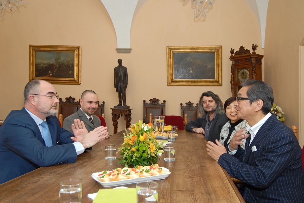 O televizním i filmovém průmyslu a jejich rolích v dnešní společnosti, důležitosti komunikace nebo o hledání historických prvků v moderních městech diskutovali primátor města Martin Zrzavecký a japonský oscarový režisér Yōjirō Takita. Ten vůbec poprvé přiletěl do České republiky u příležitosti 8. ročníku festivalu japonských filmů a kultury Eigasai 2015 – Plzeňský prolog, který je součástí významného mezinárodního projektu Japan Fest 2015, jedním z pilířů projektu Plzeň – Evropské hlavní město kultury 2015.