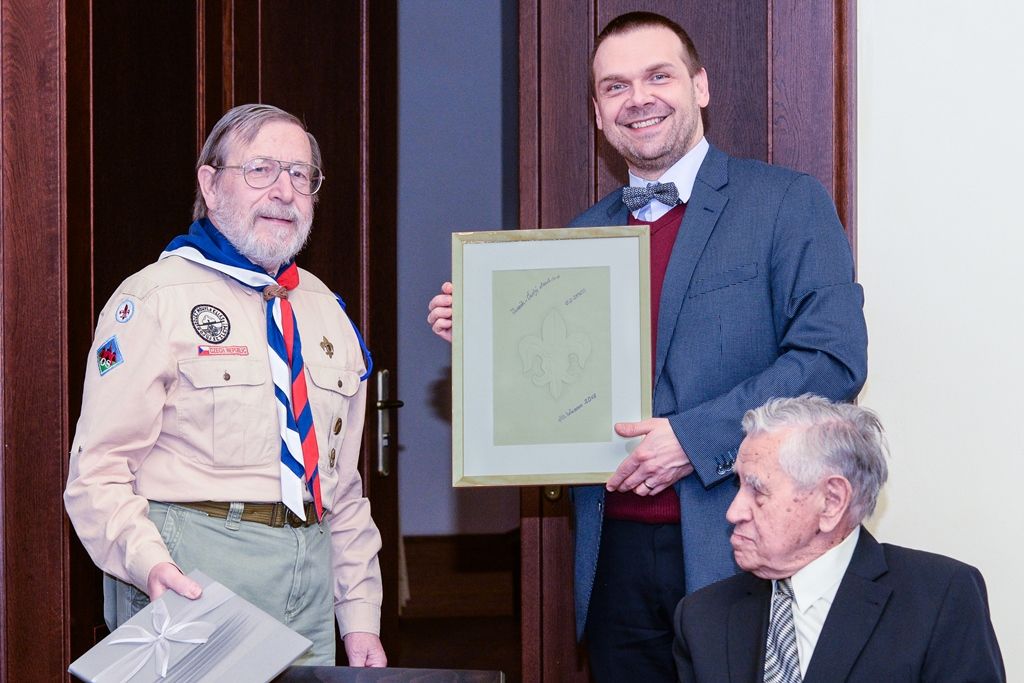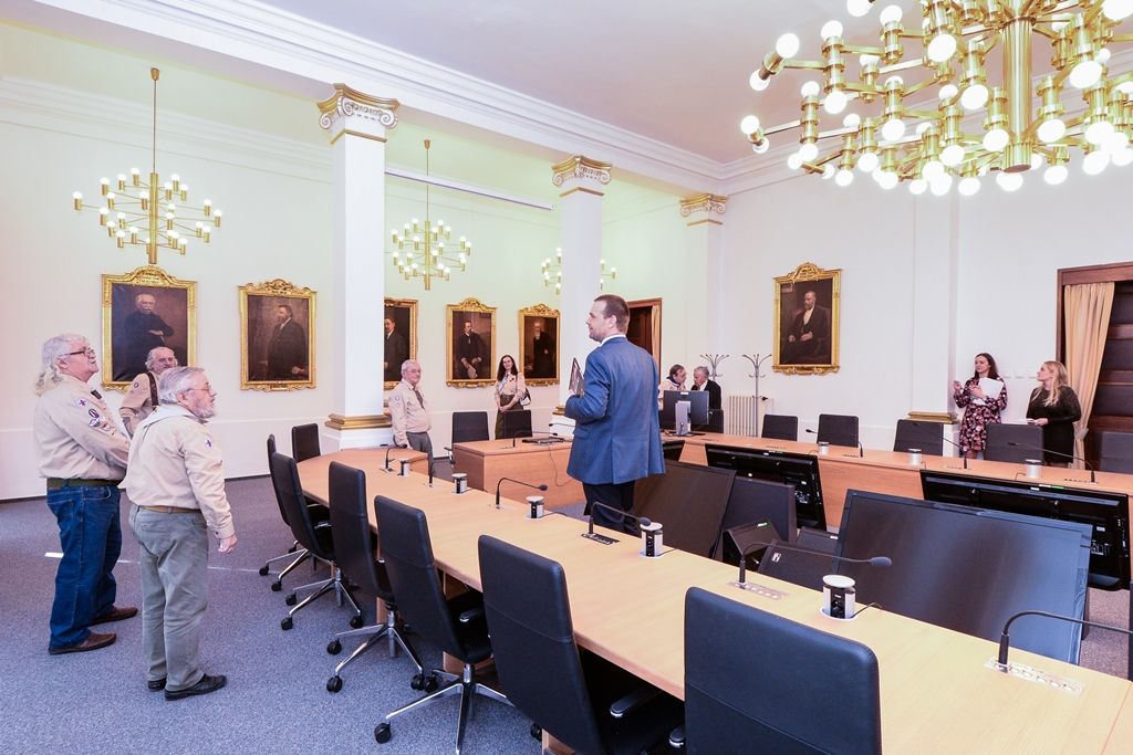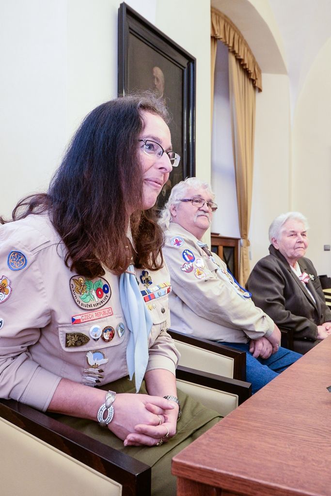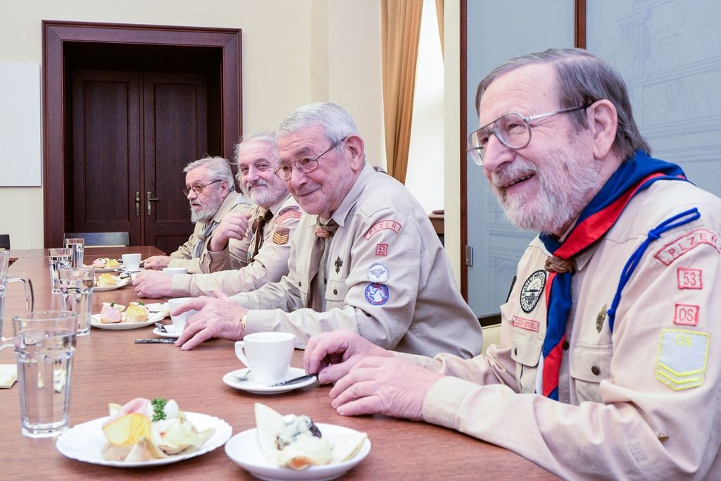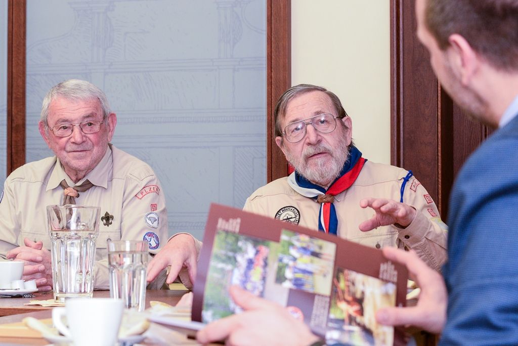 Po gratulaci Jiřímu Světlíkovi představili oldskauti primátoru Martinu Baxovi jejich plány na příští rok, kdy v Plzni uspořádají v květnu 2020 při Slavnostech svobody setkání českých, polských a slovenských oldskautů a u té příležitosti bude k vidění jejich výstava v Národopisném muzeu Plzeňska. Poté si skauti společně s primátorem Martinem Baxou prohlédli plzeňskou radnici. Jiří Světlík si přál vidět primátorský řetěz, který je stále ve sbírkách Západočeského muzea v Plzni, ve kterém sám rok a půl pracoval. Martinu Baxovi sdělil, že jeho dědeček pracoval na zdejší radnici ve strážnici, která se nacházela v dnešních prostorách mázhauzu.