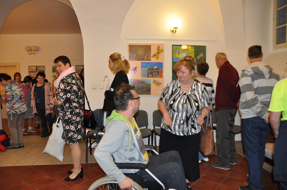 Ředitelka organizace MOTÝL, z. ú., Hana Breníková mimo jiné poděkovala nejen tvůrcům vystavených děl za jejich práci. „Moc děkuji také za možnost vystavovat, už po třetí, v těchto reprezentativních prostorách. A autorům těchto nádherných obrázků přeji, aby si užili vernisáž. A na svou výstavu pozvěte všechny vaše blízké a známé, aby se i oni mohli radovat z vaší práce,“ vyzvala Hana Breníková klienty terapeutických dílen.