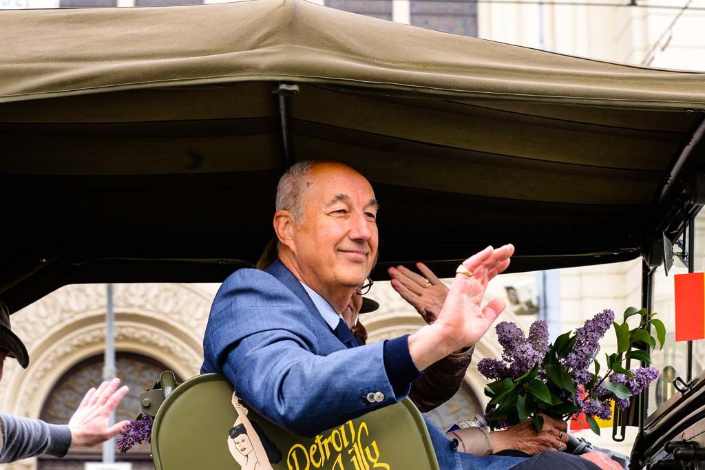 Konvoj sledovali z balkonu Velkého divadla Divadla Josefa Kajetána Tyla plzeňský primátor Martin Baxa a řada dalších hostů. Podívanou si nenechali ujít ani členové švédské metalové skupiny Sabaton v čele s frontmanem s českými kořeny Joakimem Brodénem. Sobotní vystoupení kultovní metalové kapely v nabitém lochotínském amfiteátru bylo součástí Slavností svobody.