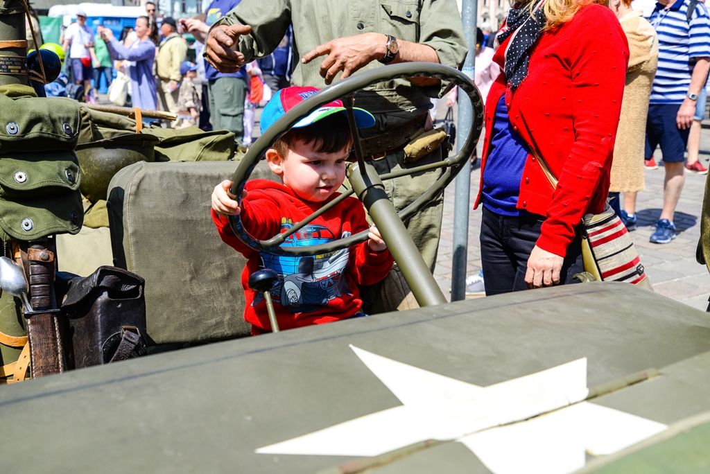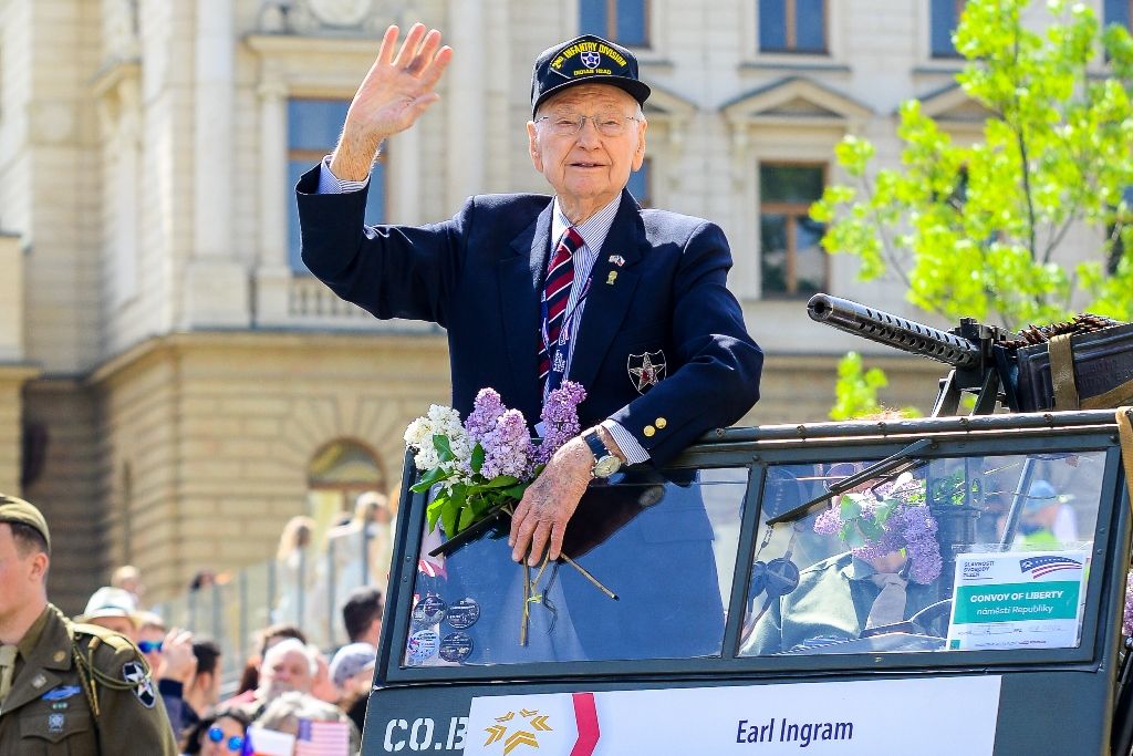 Lidé vybaveni americkými a českými vlaječkami osazenstvu vojenských vozů mávali a zdravili jej. Největší ovace si vysloužily džípy, v nichž se vezli američtí a belgičtí veteráni, kteří se zúčastnili osvobozování Plzně před 73 lety a letos opět přijeli i s rodinnými příslušníky na Slavnosti svobody. Z džípů zdravili přihlížející američtí veteráni Earl Ingram, George Thompson a James Duncan a belgičtí veteráni Louis Gihoul, Michel Gilain, Hubert Rauw a Valère Gustin. V konvoji jel i vnuk generála Pattona George Patton Waters, Luc Rensonnet, syn již zesnulého velitele 17. dělostřeleckého pluku, a čeští veteráni Josef Švarc a Alois Dubec.