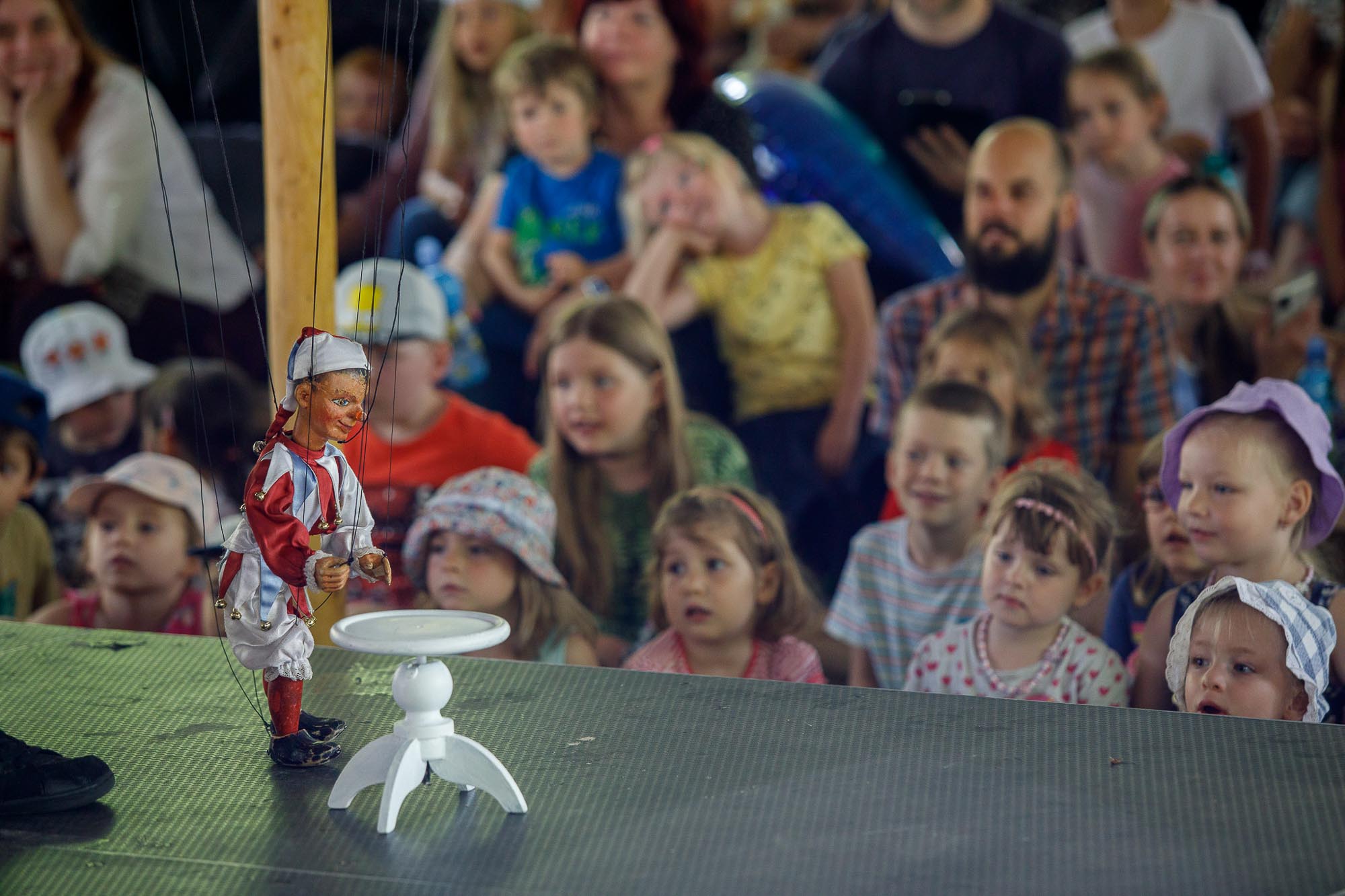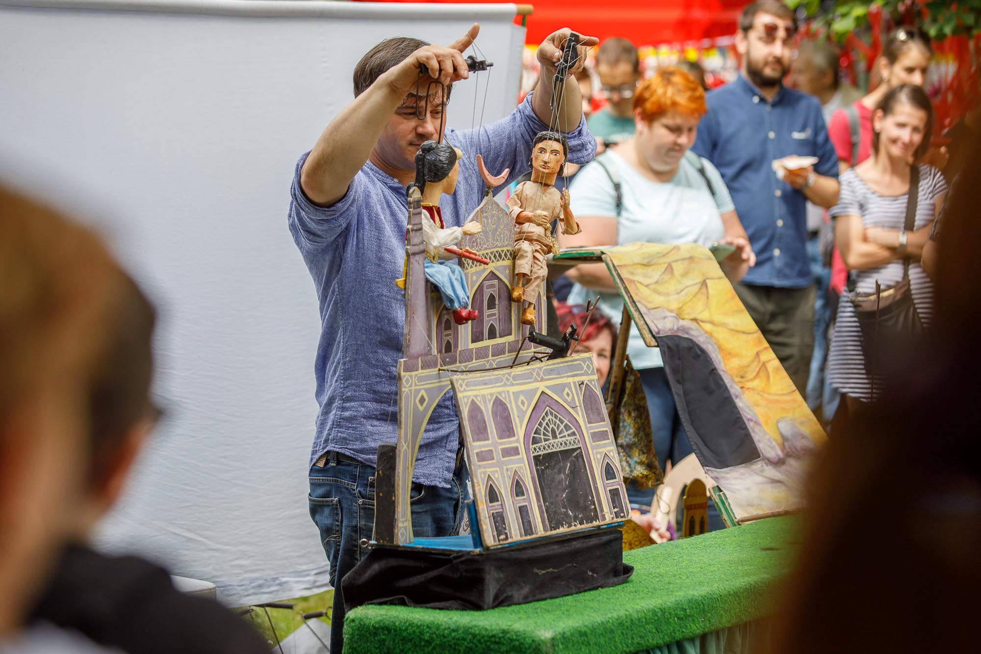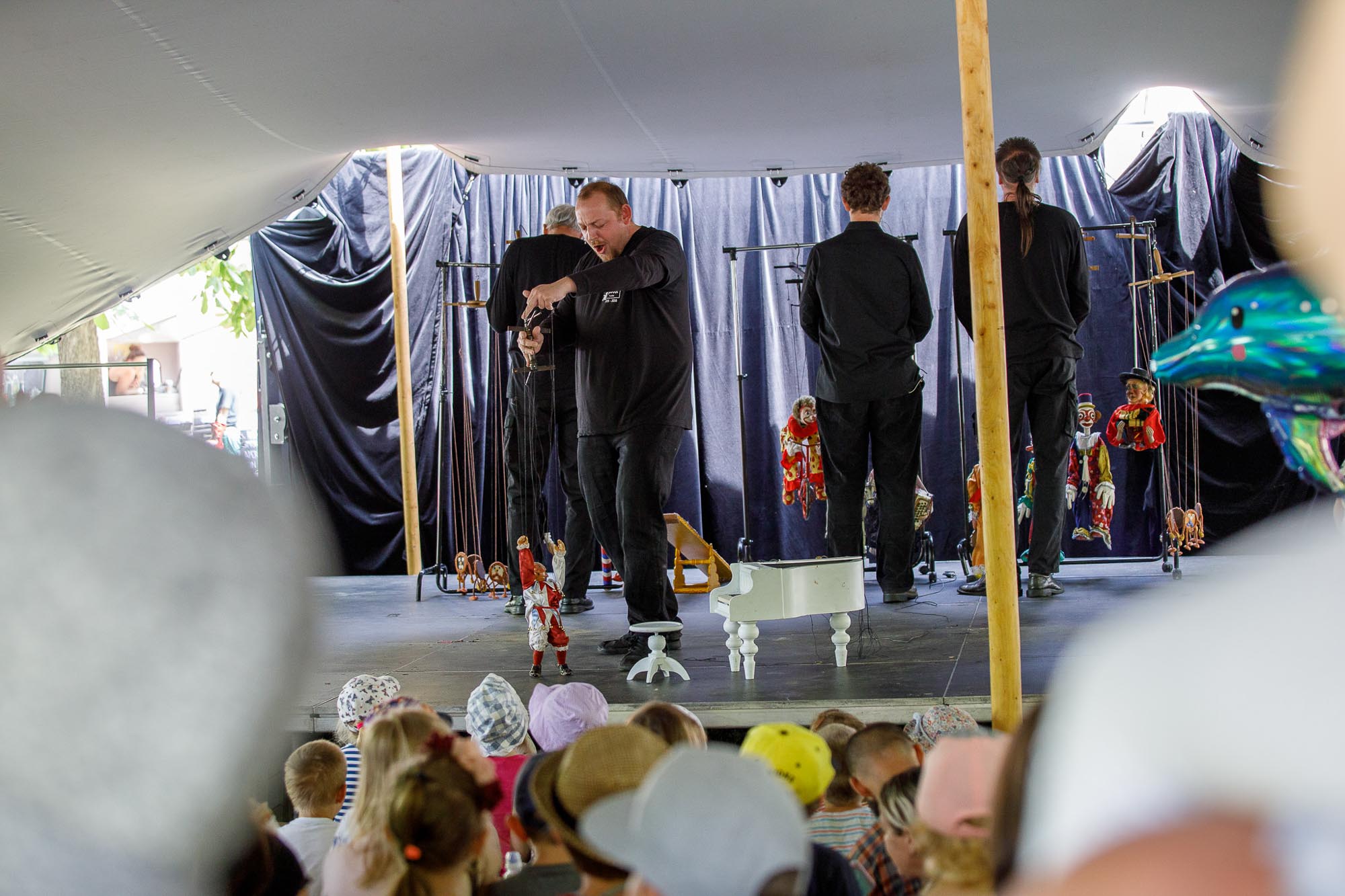 Od 11 hodin program nabídl divákům hru Aladinova kouzelná lampa Dřevěného divadla, plzeňské Loutkové divadlo V Boudě s Kašpárkovým varieté či japonské Theatro Minomushi s představením Jak silák Iwami Jutaro porazil sněžného obra Hi-Hi. Den vyvrcholil představením slavných Tří mušketýrů Divadla ALFA. Program uzavřela projekce Trnkových Starých pověstí českých v klášterní zahradě. Po celý den probíhaly v prostoru před kostelem na Jiráskově náměstí dílny pro děti. V dílnách Báry Hubené či Muzea loutek si zájemci vyrobili loutku, nechyběla ani dílna Animánie. Lidé se také mohli vydat na komentované prohlídky kostela. Vstup na akci byl zdarma.