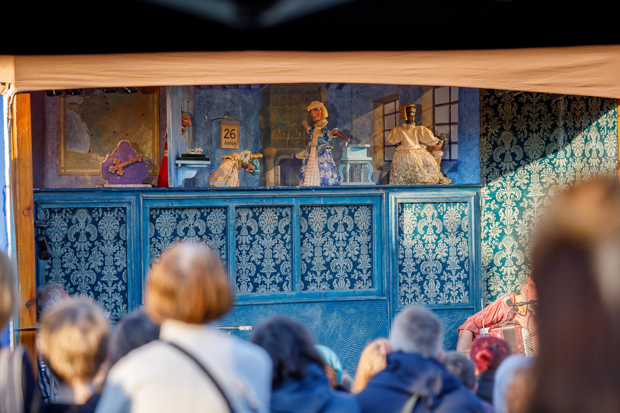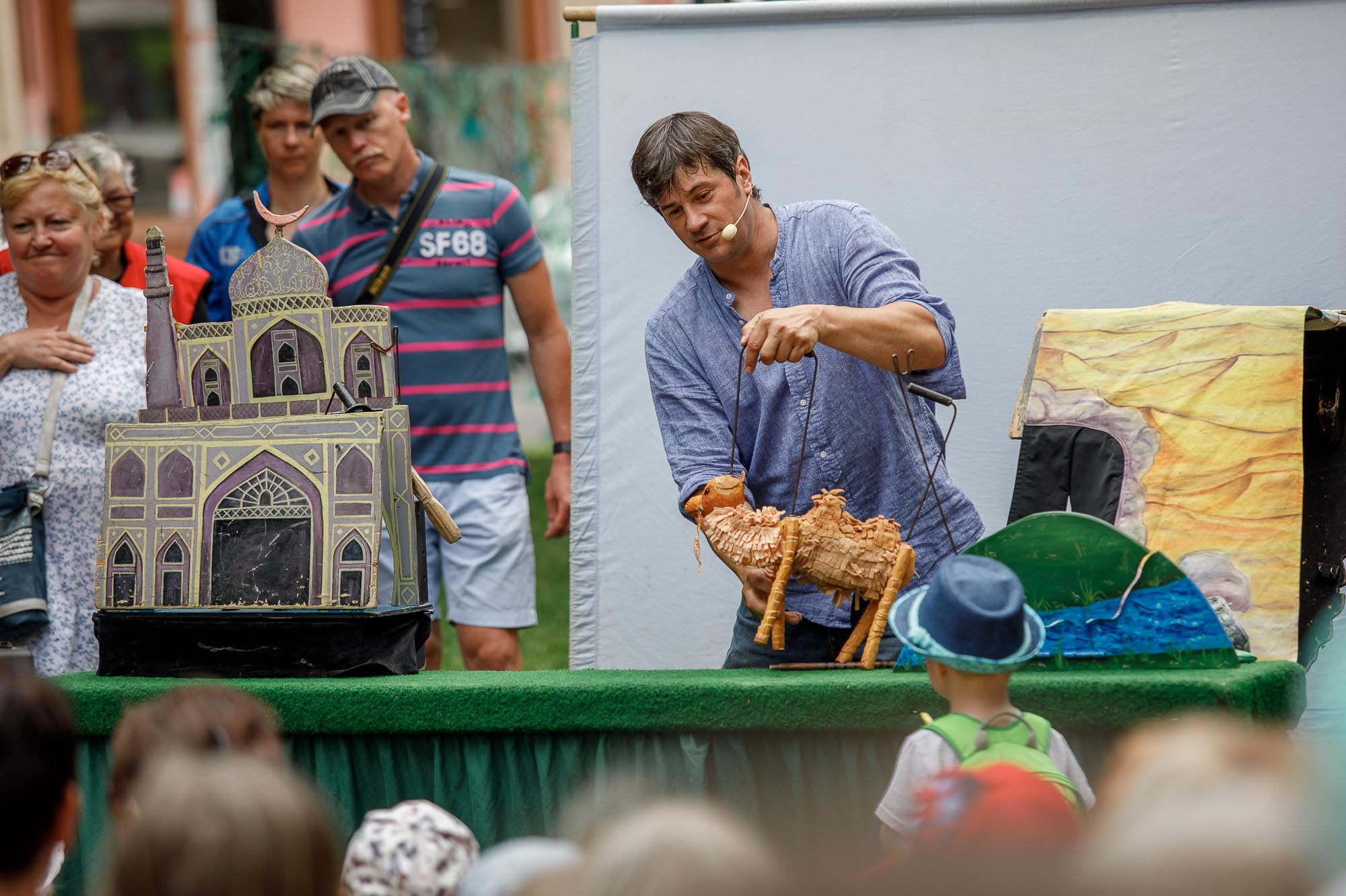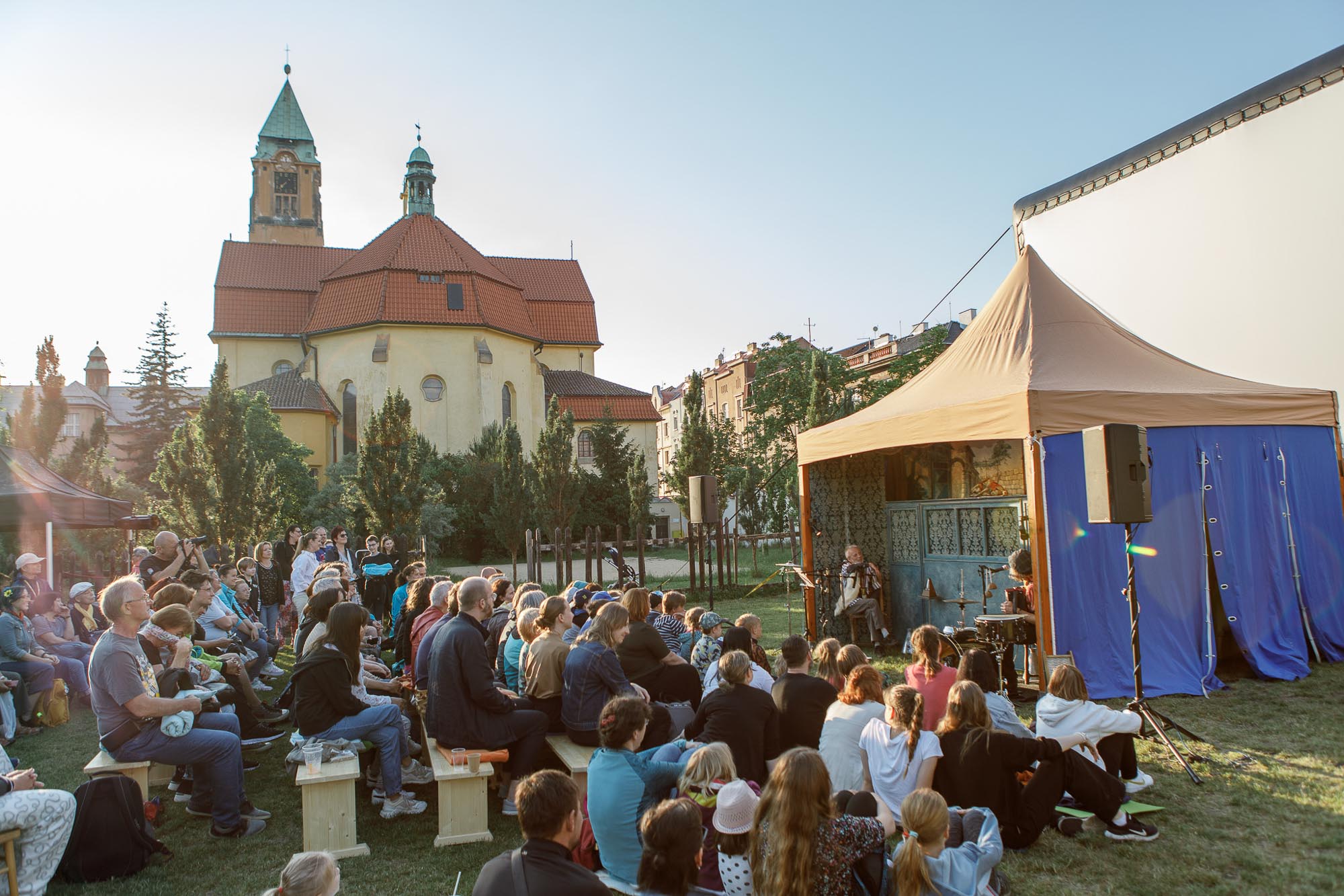 Od 11 hodin program nabídl divákům hru Aladinova kouzelná lampa Dřevěného divadla, plzeňské Loutkové divadlo V Boudě s Kašpárkovým varieté či japonské Theatro Minomushi s představením Jak silák Iwami Jutaro porazil sněžného obra Hi-Hi. Den vyvrcholil představením slavných Tří mušketýrů Divadla ALFA. Program uzavřela projekce Trnkových Starých pověstí českých v klášterní zahradě. Po celý den probíhaly v prostoru před kostelem na Jiráskově náměstí dílny pro děti. V dílnách Báry Hubené či Muzea loutek si zájemci vyrobili loutku, nechyběla ani dílna Animánie. Lidé se také mohli vydat na komentované prohlídky kostela. Vstup na akci byl zdarma.