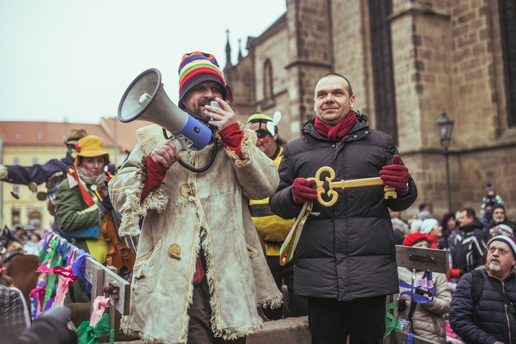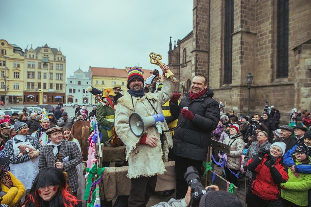 Symbolický klíč od města Plzně si v sobotu 10. února převzaly z rukou prvního náměstka plzeňského primátora Martina Baxy masopustní masky. Pestrý maškarní průvod putoval od Branky přes náměstí Republiky na Anglické nábřeží, kde poté maškary vhodily hořícího Bakchuse do řeky Radbuzy. Masopust pro Plzeňany připravil stejně jako v minulých letech Plzeňský lidový soubor Mladina.