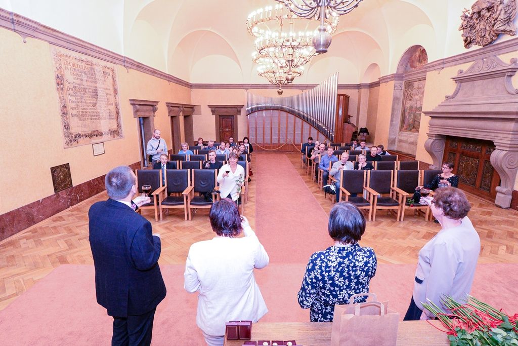 Stříbrné medaile prof. MUDr. Jana Janského za 20 odběrů obdrželo 58 oceněných. Přítomní si je převzali z rukou náměstkyně primátora pro oblast kultury, památkové péče a sociálních věcí Elišky Bartákové.