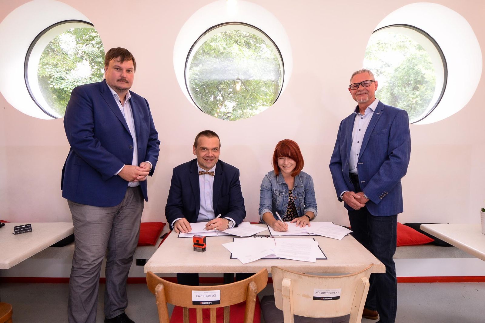 V objektu, který připomíná loď zakotvenou u Radbuzy a charakterizují ho pro loď typická kulatá okna, podepsal primátor města Plzně Martin Baxa smlouvu na poskytnutí dotace ve výši 400 tisíc korun spolku Bikeheart. Za jmenovaný spolek smlouvu podepsala jeho zakladatelka a předsedkyně Vendula Mirošovská. Slavnostního aktu se zúčastnil i náměstek primátora Michal Vozobule, do jehož gesce patří také oblast dopravy včetně městské cyklistiky.