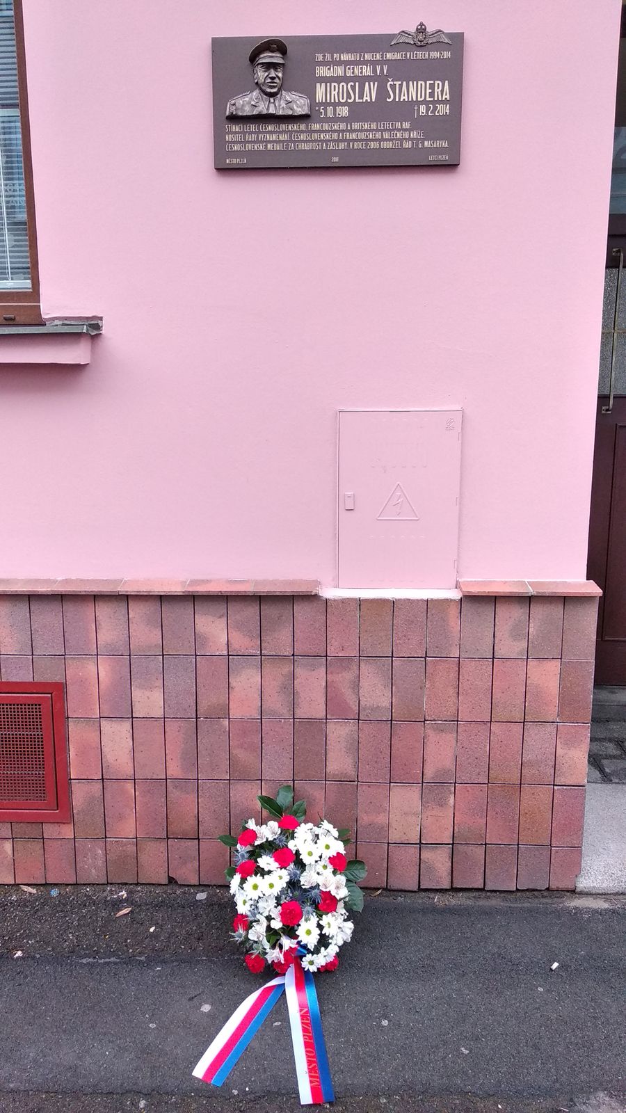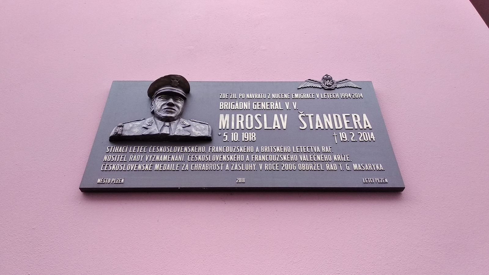 Plzeň si připomněla výročí úmrtí generála Miroslava Štandery, jenž zemřel 19. února 2014. K pamětní desce na domě v Božkovské ulici 43, kde slavný pilot britského Královského letectva (RAF) žil u dcery až do své smrti, položili zástupci města květiny.
