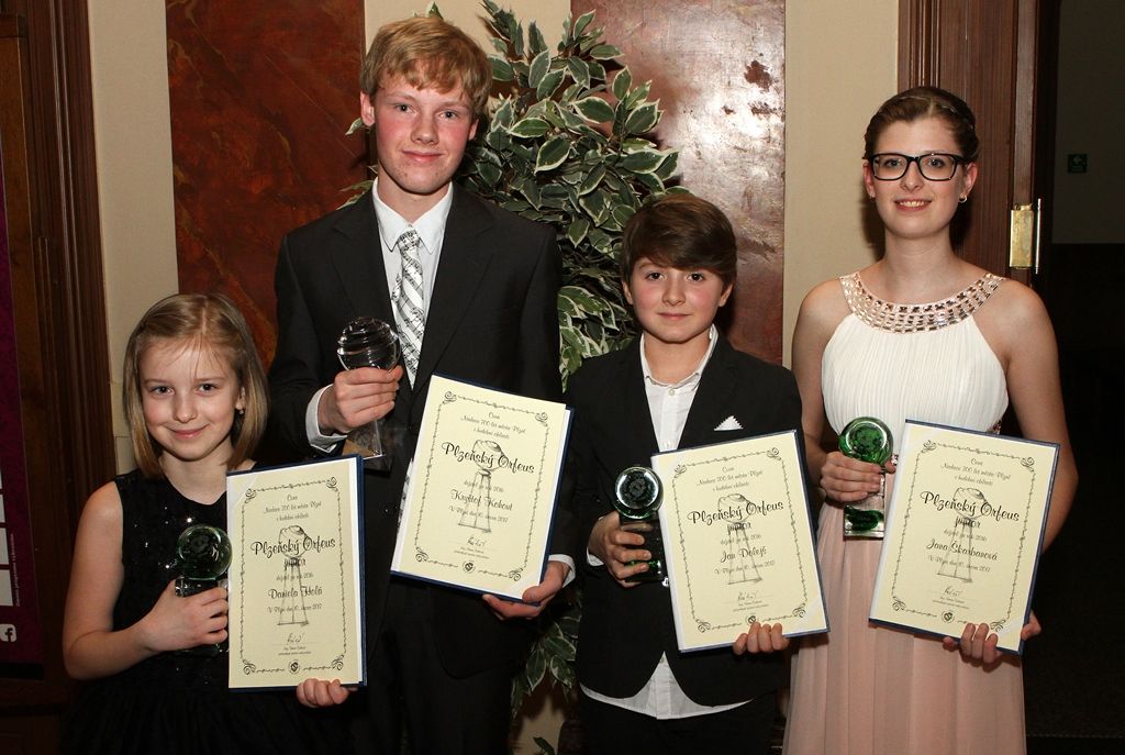 Nadace také ocenila už pošesté mladší hudebníky. Cenu Plzeňský Orfeus junior 2016 obdrželi jedenáctiletý Jan Dolejš, který získal Orfea už podruhé, a čtrnáctiletá Jana Škarbanová. Oba se věnují hře na klavír. Orfeem juniorem se stala také osmiletá Daniela Holá, která studuje hru na akordeon. Všichni jsou ze Základní umělecké školy Bedřicha Smetany. I oni převzali na plese v Měšťanské besedě z rukou primátora Plzně Martina Zrzaveckého a předsedkyně správní rady nadace Hany Švábové ceny. „Mám z ní velkou radost, ale docela jsem se divila, že jsem ji dostala,“ svěřila se akordeonistka Daniela Holá. Dodala, že jejím vzorem je dědeček, který hrál na heligonku a na housle.