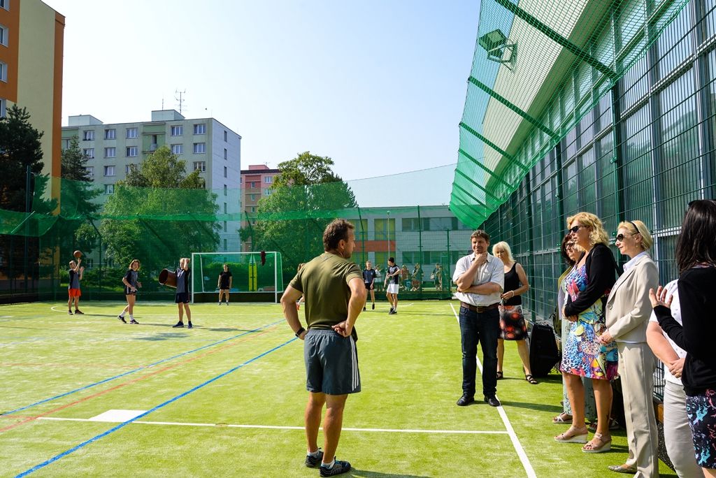 Podle ředitelky školy Vladimíry Holé původní hřiště bylo již 16 let staré a koberec přestal odvádět vodu, na povrchu se dělaly louže. „Máme sportovní třídy a v rámci 6. až 9. tříd děti absolvují všechny typy sportů, které může škola nabídnout, tedy zejména házenou, pozemní hokej, fotbal, florbal a tenis. Protože máme jen jednu tělocvičnu a toto venkovní hřiště, je obojí maximálně využívané. Dětí stále přibývá, populační boom je znát, do budoucna bychom byli rádi i za druhou tělocvičnu,“ uvedla ředitelka.