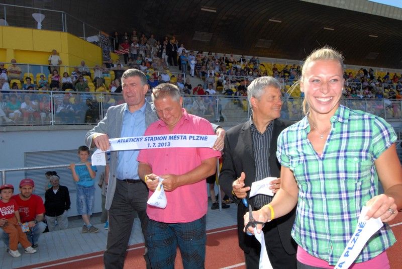 Světová rekordmanka Jarmila Kratochvílová, stříbrný olympionik, diskař Imrich Bugár a halová mistryně Evropy ve skoku o tyči Jiřina Ptáčníková, všichni tři atleti světové extratřídy své doby dnes patřili k hlavním hvězdám slavnostního otevření nového atletického stadionu. Do sportovního areálu ve Vejprnické ulici se nejen na ně přišla podívat více jak tisícovka návštěvníků. Pro děti byly připraveny speciální atletické disciplíny, které si mohly vyzkoušet. K doprovodnému programu patřila také autogramiáda přítomných atletických velikánů.
