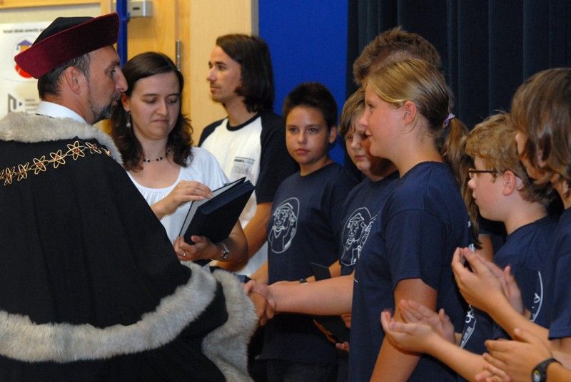 Slavnostní zakončení celé akce se uskutečnilo v akademickém stylu - formou promoce. Nechyběla fanfára, vrchní představitelé fakulty v talárech ani diplomy. Nejúspěšnější absolventi dětské univerzity navíc získali věcné ceny. Jedním z předávajících byl vedle rektorky Ilony Mauritzové primátor Martin Baxa.