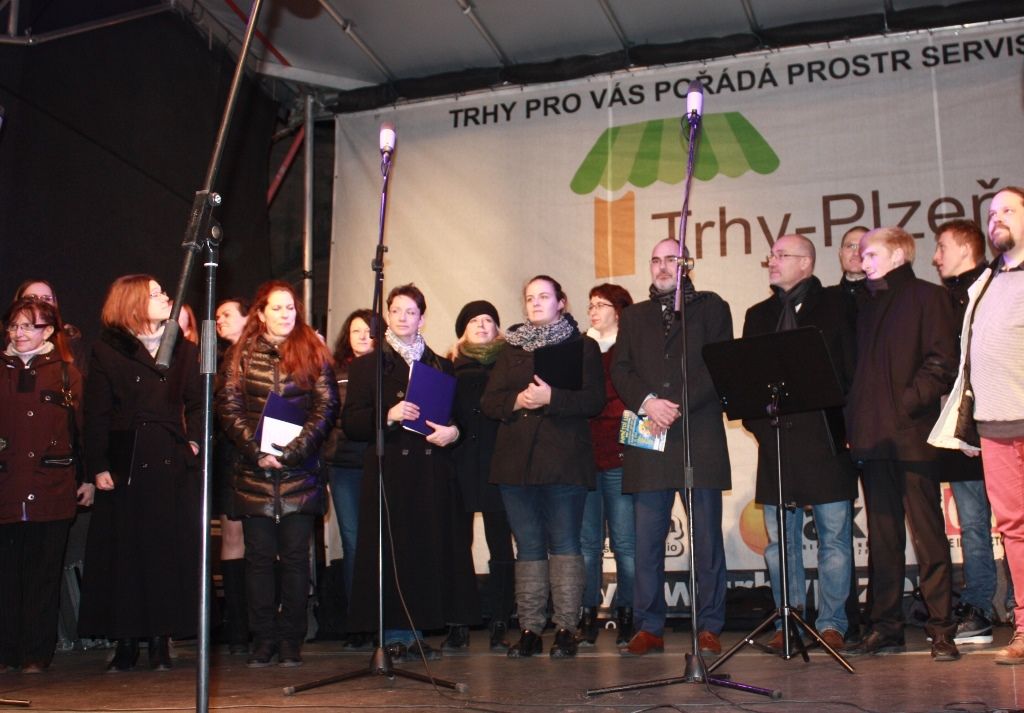 Více než čtyři tisíce lidí si ve středu večer společně zazpívaly na náměstí Republiky v Plzni koledy. Zapojily se do projektu pořádaného Českým rozhlasem, ve stejnou chvíli jako v západočeské metropoli zpívali lidé i v dalších 12 městech Plzeňského kraje, celkem jich tak bylo přes 10 tisíc. Akci, které se zúčastnil i primátor krajské metropole Martin Zrzavecký, přenášel Český rozhlas živě.