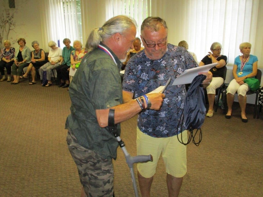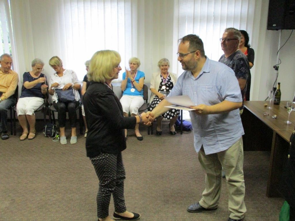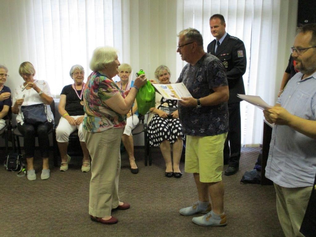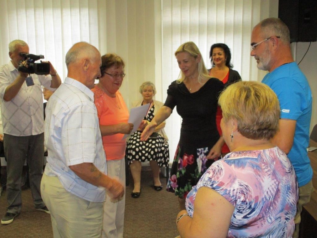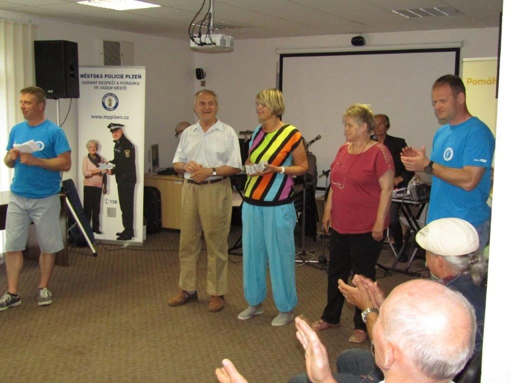 Závěrečný galavečer, který se nesl v duchu slavnostního vyřazení absolventů workshopu, dal prostor i oběma starostům zmíněných plzeňských obvodů, kteří přijeli pozdravit své seniory. Ani jeden však nepřijel s prázdnou: Miroslav Brabec obdaroval účastníky šampaňským, Michal Chalupný vstupenkou na akci Skvosty s vůní benzínu.