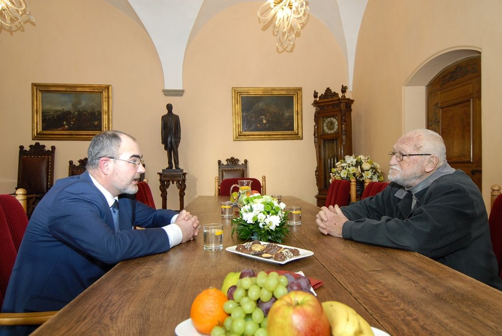 „Měl jsem tady takový vyřezávaný stůl, asi po Petákovi,“ začal vzpomínat profesor Zdeněk Mraček při dnešním přijetí primátorem města Martinem Zrzaveckým v salonku na radnici. „K primátorovi v Plzni se chodí po schodech, to bylo jediné, co jsem tušil, že mě tu čeká,“ přiznal bývalý plzeňský primátor, který 5. prosince 1990 nastoupil do funkce. Na radnici přijal pozvání především u příležitosti svých 86. narozenin.