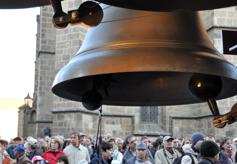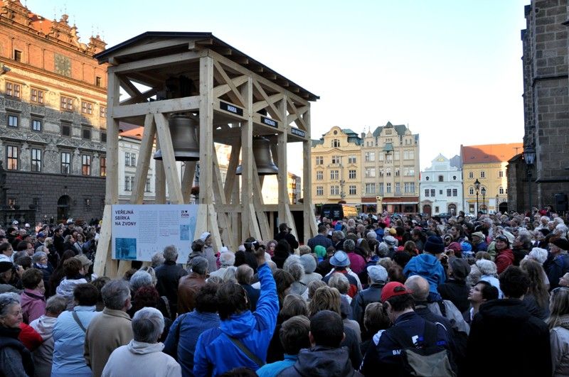 Dva ze čtyř nový zvonů, které by se měly rozeznít z věže katedrály svatého Bartoloměje na začátku roku 2015, byly včera Plzeňany slavnostně přivítány. Zvony Maria a Jan Nepomucký odlil v létě v holandské zvonařské dílně Petr Manoušek. Než se rozezní 17. ledna 2015 během slavnostního zahájení roku, kdy bude Plzeň evropským hlavním městem kultury, mohou si je občané i návštěvníci města prohlédnout v provizorní zvonové stolici na náměstí Republiky.
