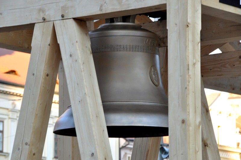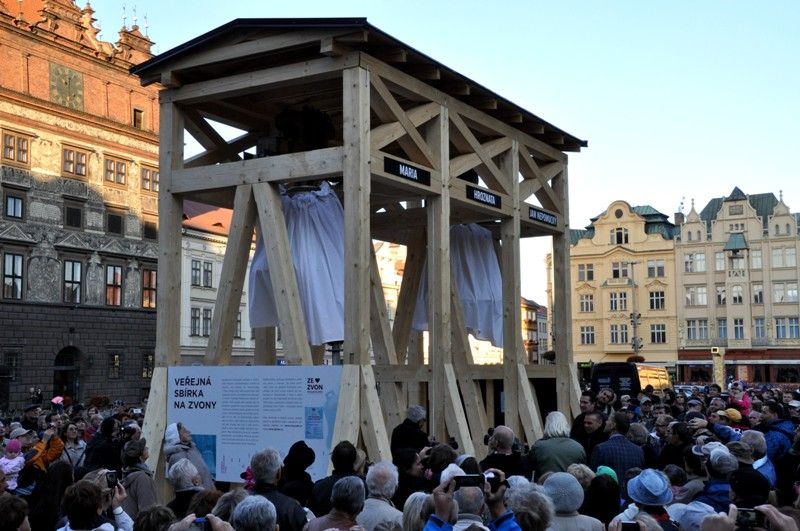 Nové zvony pro katedrálu jsou k vidění v provizorní dřevěné stolici na náměstí Republiky