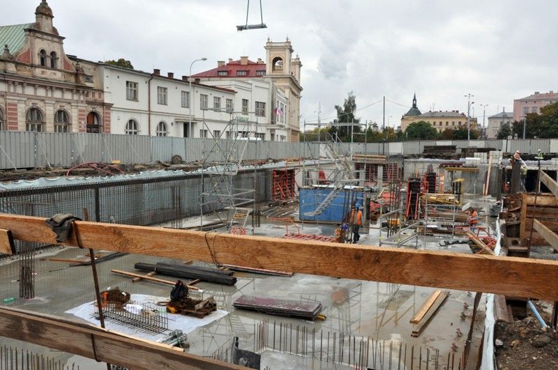 Rozestavěná budova nového divadla se druhý říjnový víkend otevřela veřejnosti. Hrubou stavbu divadelní i provozní budovy a také vedlejší parkovací dům si přišlo prohlédnout sto padesát zájemců. Odborný výklad zajišťoval koordinátor stavby Jaroslav Möller, některé skupiny doprovázel i technický náměstek primátora Petr Rund.