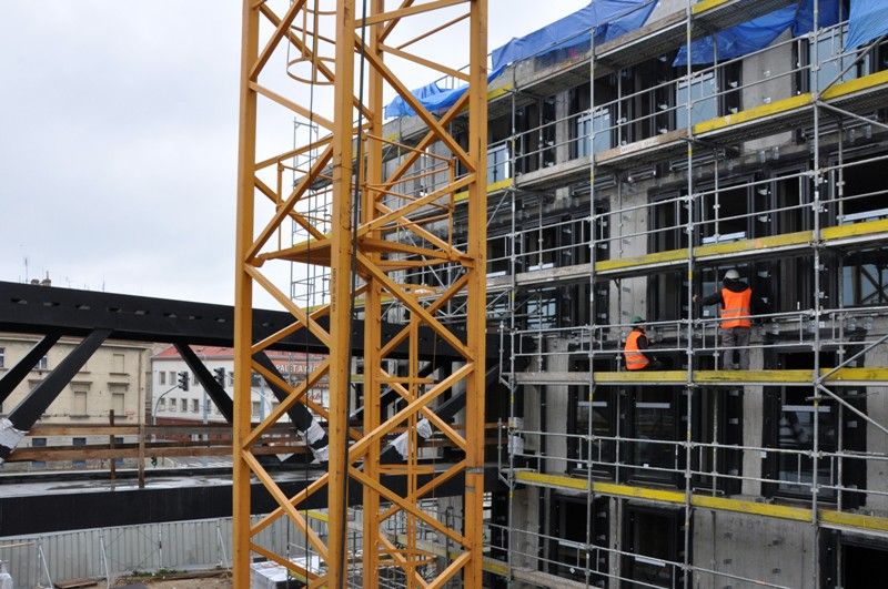 Dokončení stavby je plánované na duben až květen příštího roku. Nyní je hotová celá hrubá stavba divadelní a provozní budovy, staví se pětipodlažní parkovací dům. „Dva měsíce se montují technologie,“ připomněl náměstek Petr Rund.