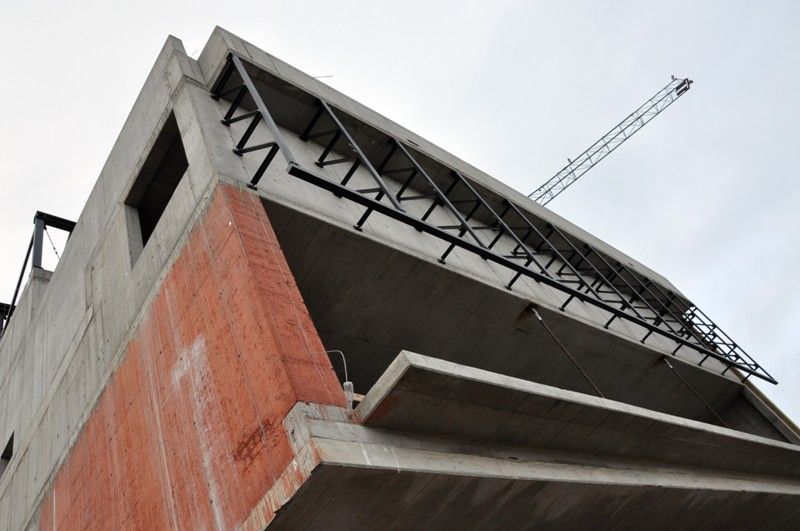 Nosným systémem novostavby je monolitická železobetonová prostorová konstrukce stěn, desek a sloupů. Na plášť budovy tvořený betonovou litou monolitickou fasádou navazuje střešní plášť, který je navržen jako obrácená střecha se spádovou vrstvou z lehkého betonu s hydroizolační a tepelně-izolační úpravou.