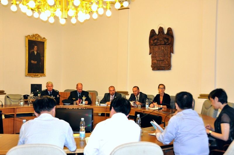 Seznámit se s projektem Bezpečné město a s činností odboru bezpečnosti a prevence kriminality plzeňského magistrátu v rámci přípravy preventivních projektů přijeli zástupci kanceláře pro bezpečnost veřejnosti čínského města Jiaxing z provincie Zheiang. V diskusi s městským radním pro bezpečnost Robertem Houdkem, vedoucím územního odboru vnější služby Městského ředitelství Policie ČR Plzeň Petrem Nováčkem, zástupcem velitele městské policie Michalem Rybáčkem a vedoucím odboru bezpečnosti a prevence kriminality Alešem Průšou se mluvilo především o nastavení zásad bezpečnosti zejména v oblasti veřejného pořádku a kriminality, o výkonu služby nebo výcviku policistů. Po debatě na plzeňské radnici navštívila čínská reprezentace služebnu městské policie Plzeň – Bory, kde si prohlédla výstroj a výzbroj strážníků.