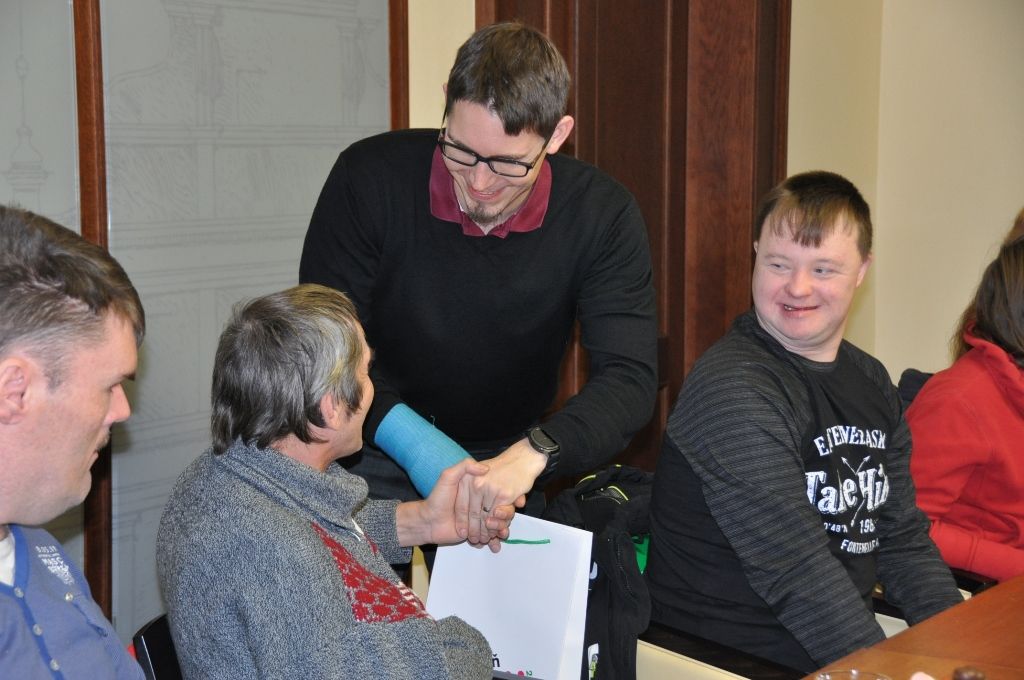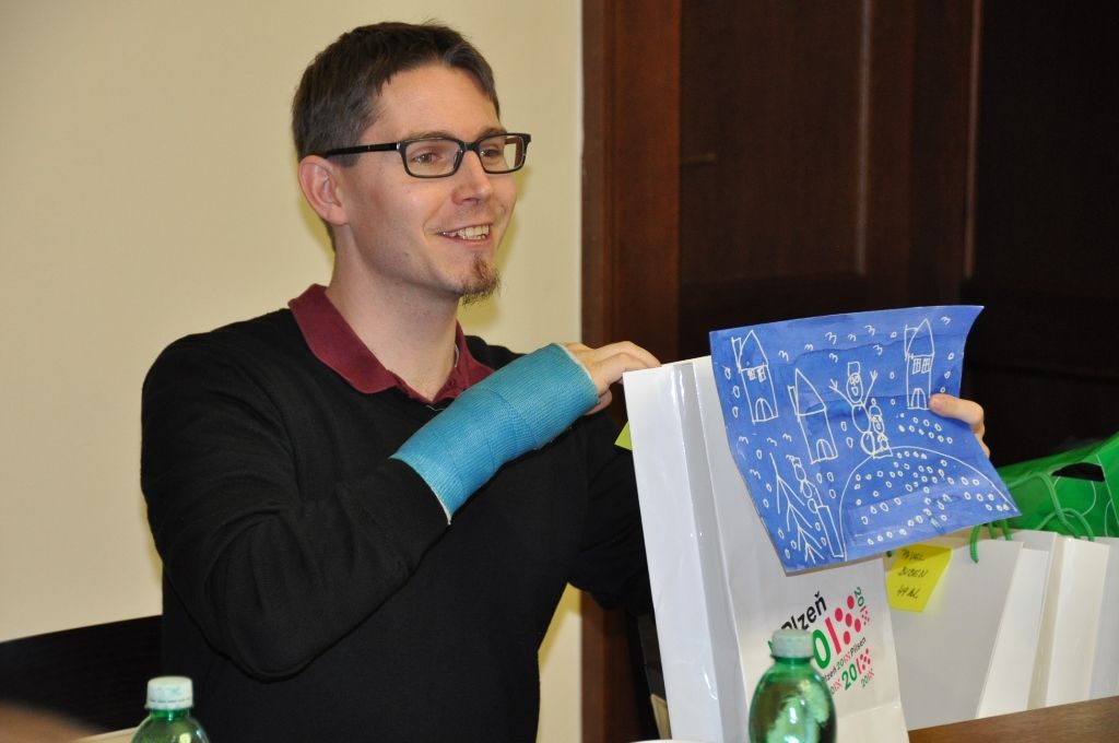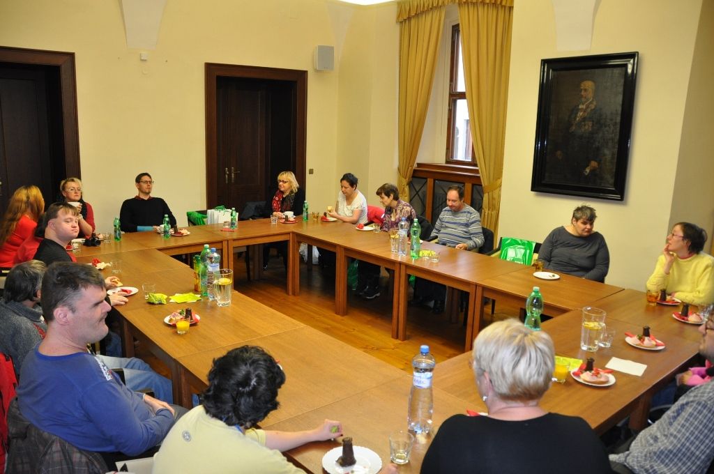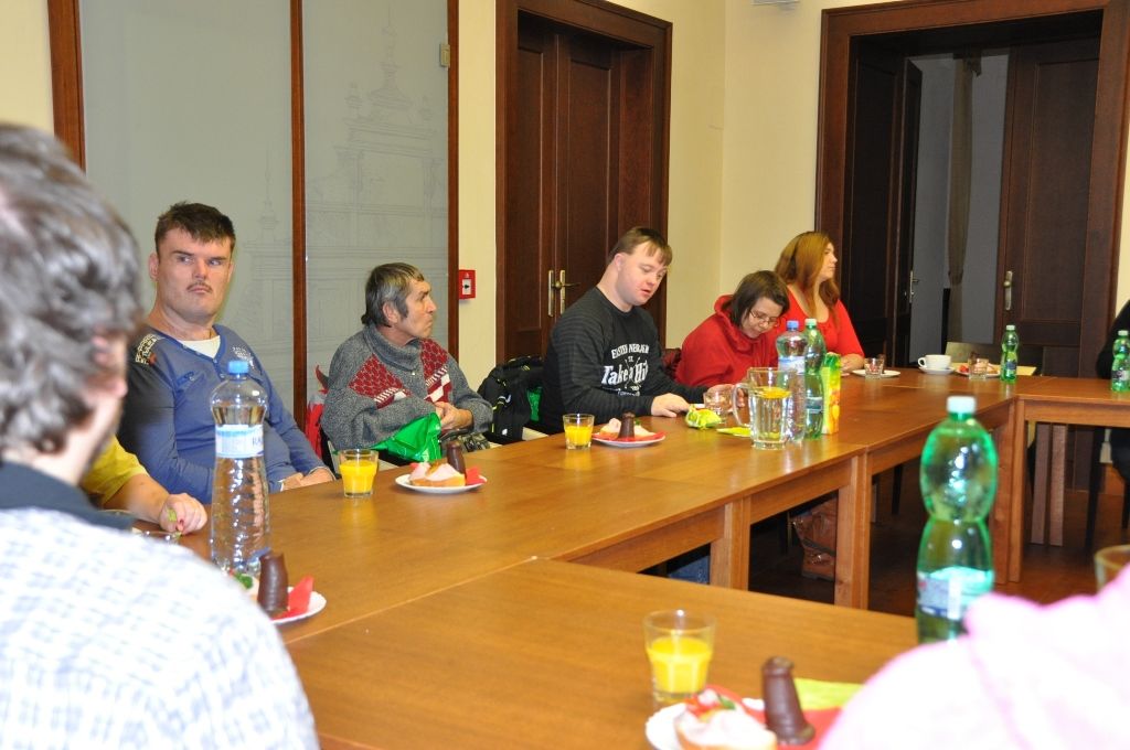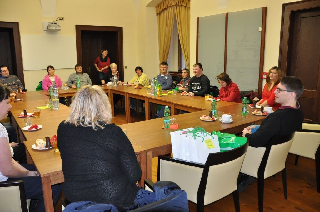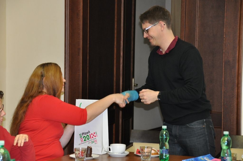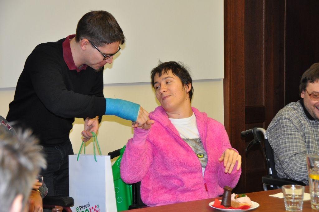 Klienty organizace Motýl, která se již dvanáctým rokem věnuje podpoře postižených osob a rodinám s dětmi se zdravotním handicapem, pozval na plzeňskou radnici ekonomický náměstek primátora Pavel Kotas. Setkání v Petákově sále se zúčastnila i ředitelka organizace Hana Breníková a vedoucí Terapeutické dílny Eva Kepková.
