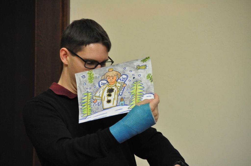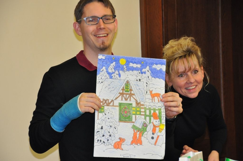 „Chtěl bych vám poděkovat za nakreslení obrázků s vánoční tematikou, z nichž jsem po dlouhém prohlížení vybral čtyři a využil je pro vánoční přání. Také mě těší, že jsou u vás vaši klienti stále spokojeni, a jsem rád za sebe, že vám mohu tento vánoční čas takto zpestřit. Dovolte mi vám všem popřát krásné Vánoce a šťastný nový rok,“ řekl Pavel Kotas a předal klientům drobné dárky.