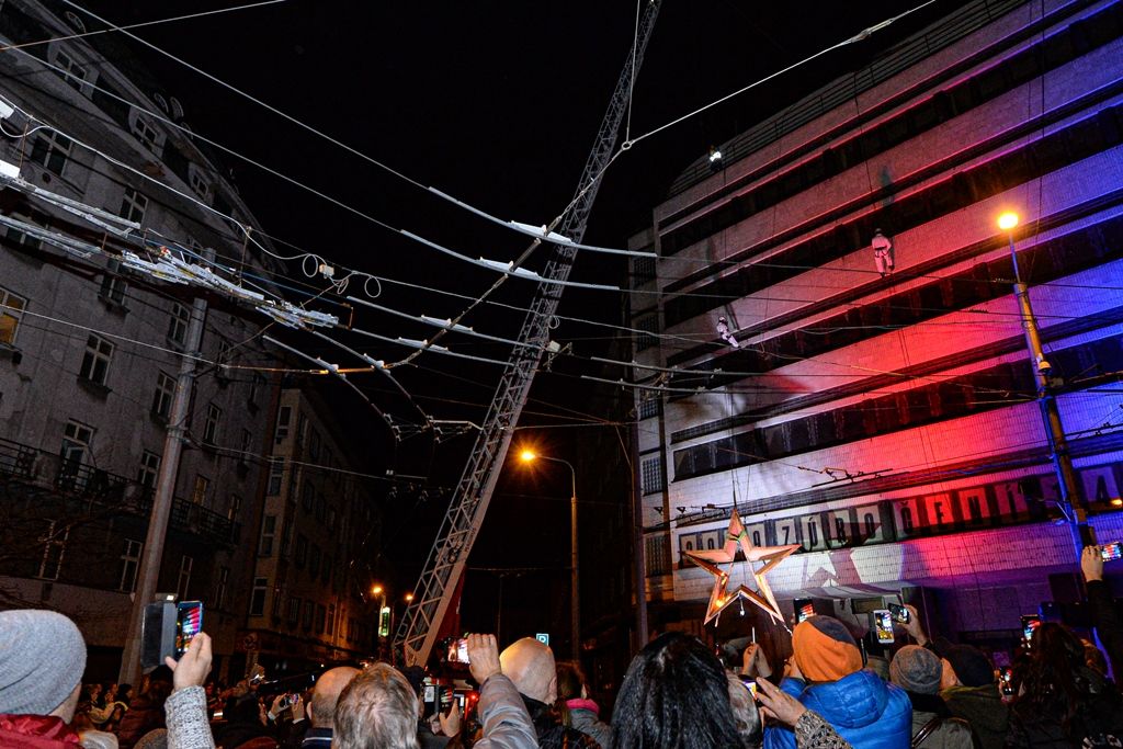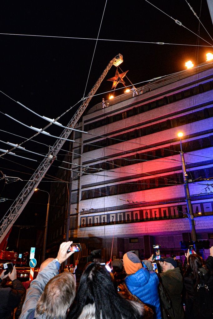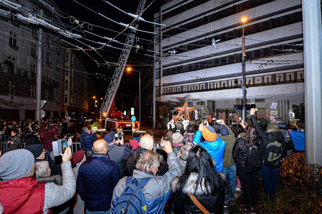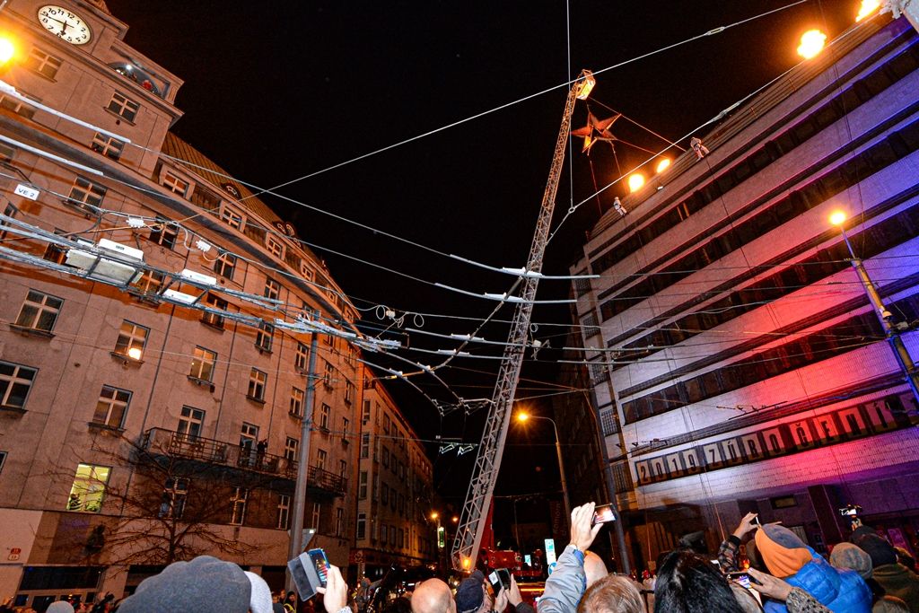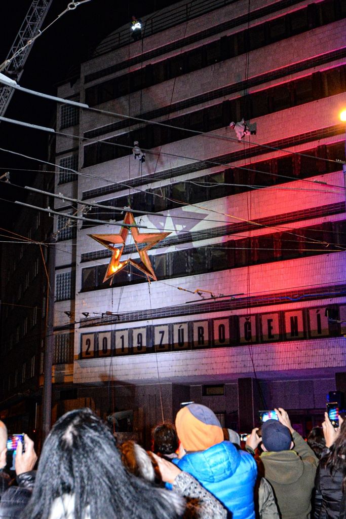 Odstraněním pěticípé hvězdy vyvrcholily celodenní oslavy 17. listopadu v Plzni, akce byla silným a dojemným momentem