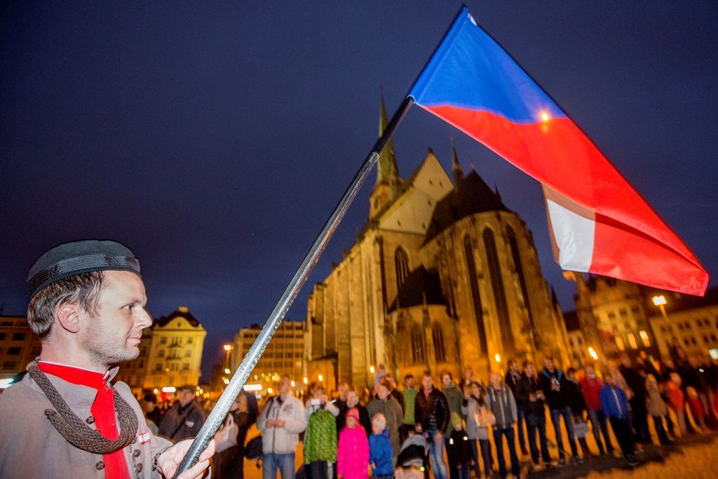 Celodenní oslavy zakončilo vzpomínkové setkání na náměstí T. G. Masaryka a následný Průvod světel, který vyvrcholil tradičním ohňostrojem na náměstí Republiky.
